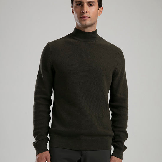 This mock neck knit sweater delivers understated sophistication with a modern edge. Designed with a clean silhouette, it features a refined ribbed neckline, cuffs, and hem for a polished finish. Crafted from soft, breathable knit fabric, it ensures comfort while maintaining structure, making it versatile enough for both smart-casual office wear and relaxed weekend styling. A timeless staple that pairs seamlessly with tailored trousers or denim.