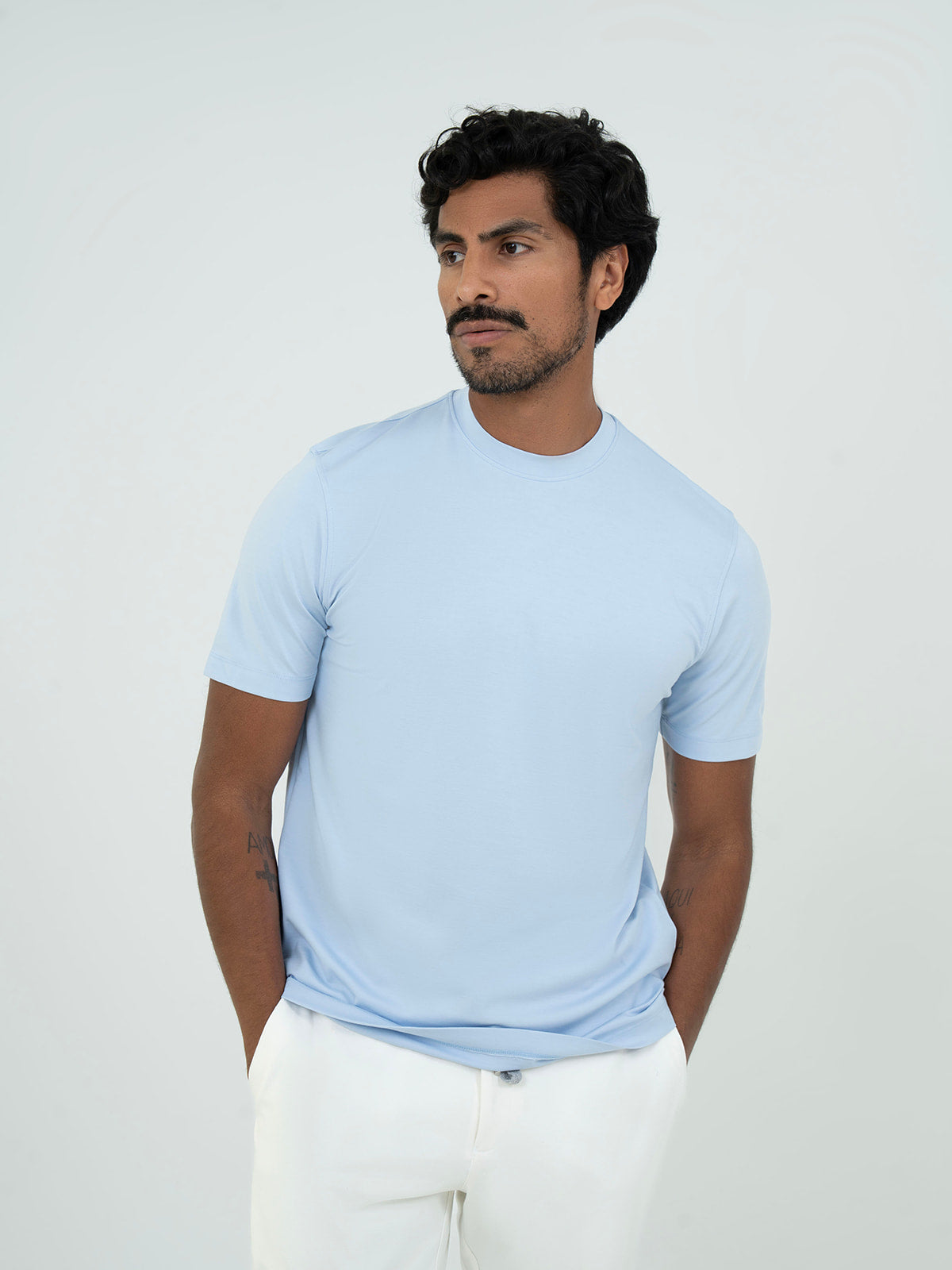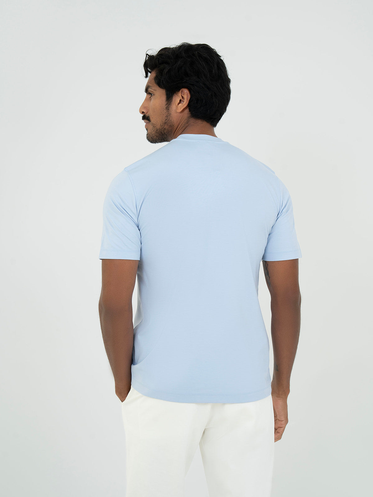 Redefining the casual wardrobe, our Basic T-shirt in Baby Blue is the pinnacle of minimalist luxury. Crafted from high-twist premium Rayon, this isn’t your average tee—it’s a high-performance staple with a silk-soft finish and a sophisticated natural drape. Designed for the man of status, its breathable, moisture-wicking fabric ensures effortless cool whether worn as a standalone piece for a relaxed weekend or layered under a bespoke blazer for a sharp, modern office look. The reinforced crew neck and tailored fit maintain a crisp silhouette wash after wash, while the deep, fade-resistant black pigment projects an aura of understated authority.