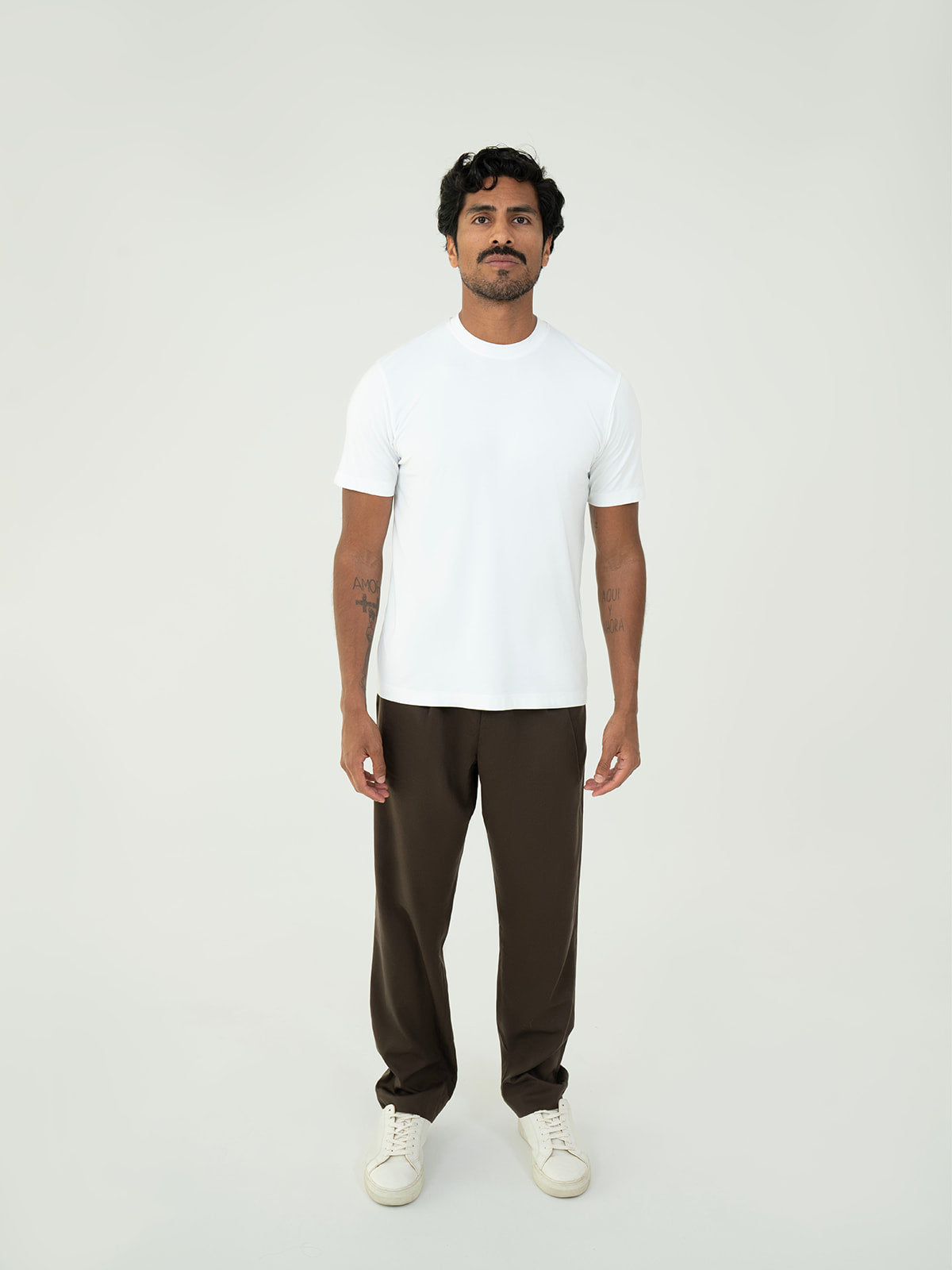 Redefining the casual wardrobe, our Basic T-shirt in White is the pinnacle of minimalist luxury. Crafted from high-twist premium Rayon, this isn’t your average tee—it’s a high-performance staple with a silk-soft finish and a sophisticated natural drape. Designed for the man of status, its breathable, moisture-wicking fabric ensures effortless cool whether worn as a standalone piece for a relaxed weekend or layered under a bespoke blazer for a sharp, modern office look. The reinforced crew neck and tailored fit maintain a crisp silhouette wash after wash, while the deep, fade-resistant black pigment projects an aura of understated authority.