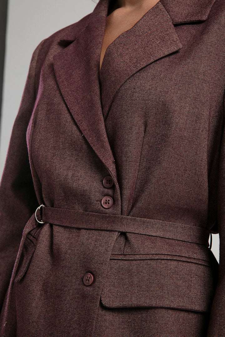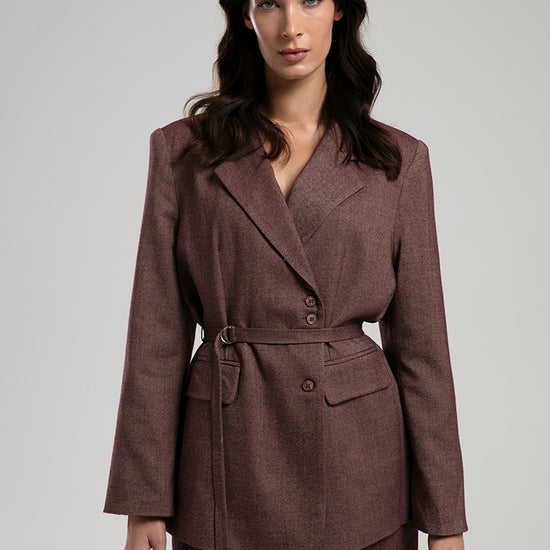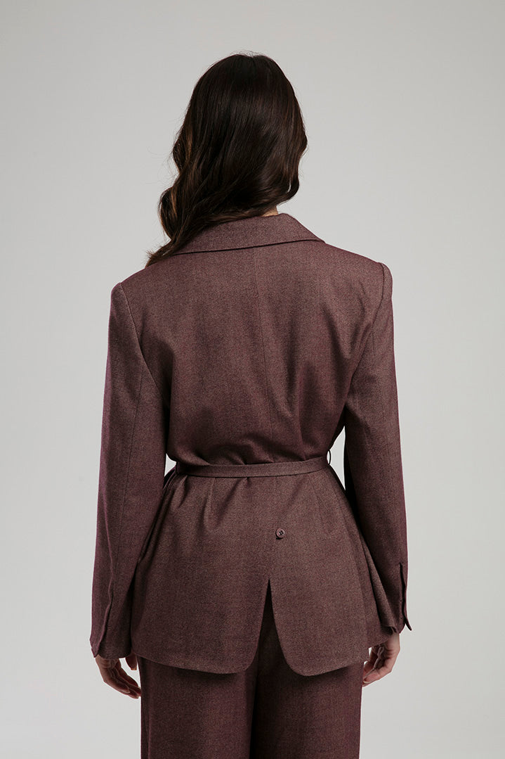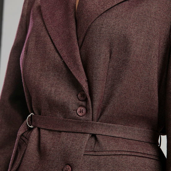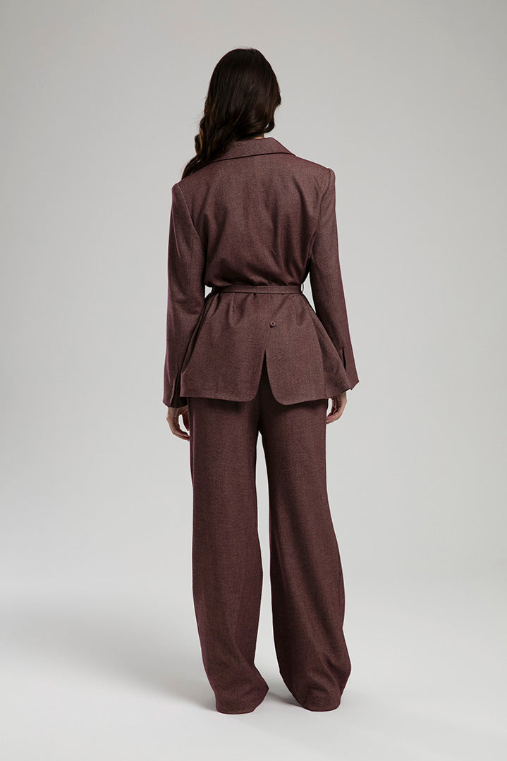 Belted Blazer & Wide-Leg Trouser Set - Burgundy