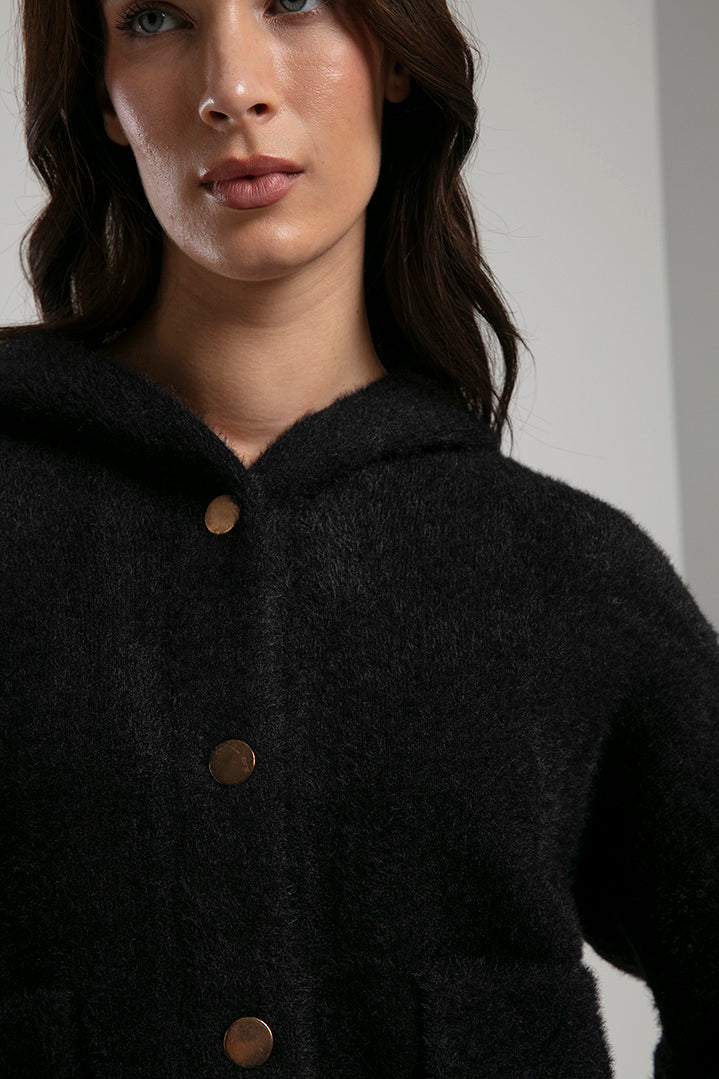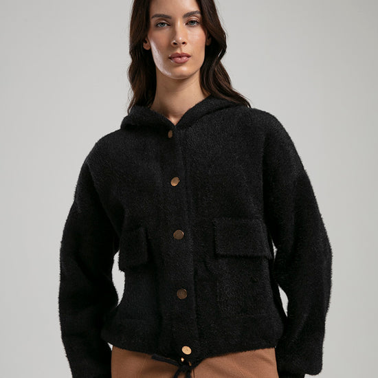 A modern take on casual outerwear, this white hooded jacket is crafted from a soft textured fabric with a relaxed fit. Featuring front flap pockets, button-up closure, and adjustable drawstrings at the hem, it blends comfort with contemporary style. Ideal for layering, it adds a fresh and versatile touch to everyday looks.
