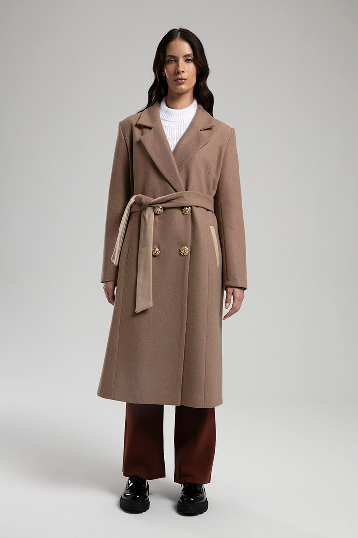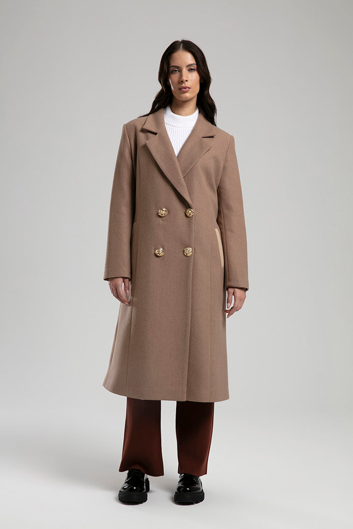 Sophisticated and versatile, this black double-breasted wool coat is a wardrobe essential for modern elegance. Featuring structured tailoring, sharp lapels, and striking gold-tone buttons, it creates a polished silhouette suitable for both professional and casual settings. The longline design adds refinement, while the premium wool blend provides warmth and comfort through cooler seasons. A timeless outerwear piece that pairs seamlessly with tailored trousers, dresses, or everyday denim.