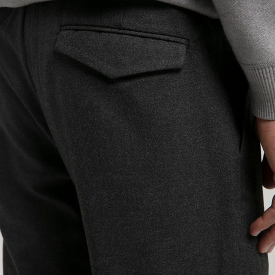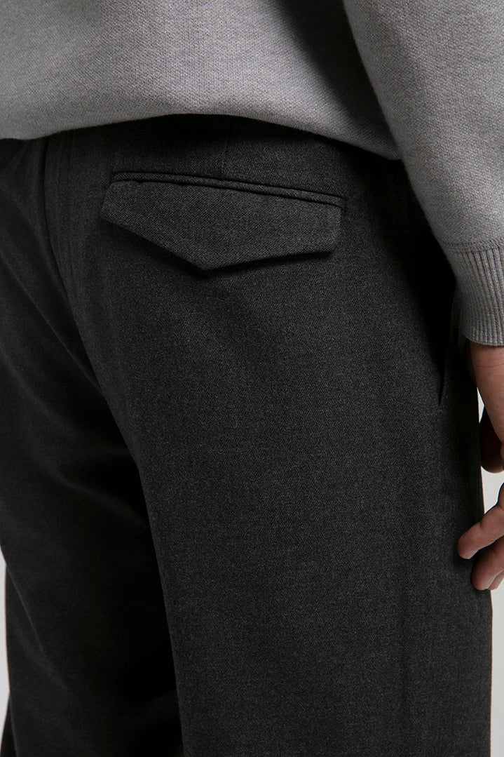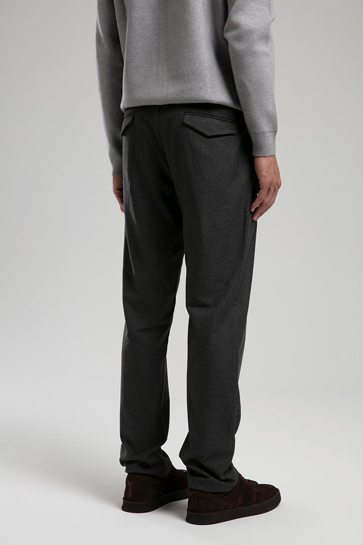 Refined comfort meets modern tailoring in these trousers. Designed with an adjustable drawstring waistband, they provide a sleek, contemporary silhouette while ensuring all-day ease. Versatile enough to pair with sweaters or shirts, these trousers are a wardrobe essential for both casual and smart-casual settings.