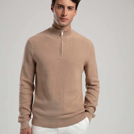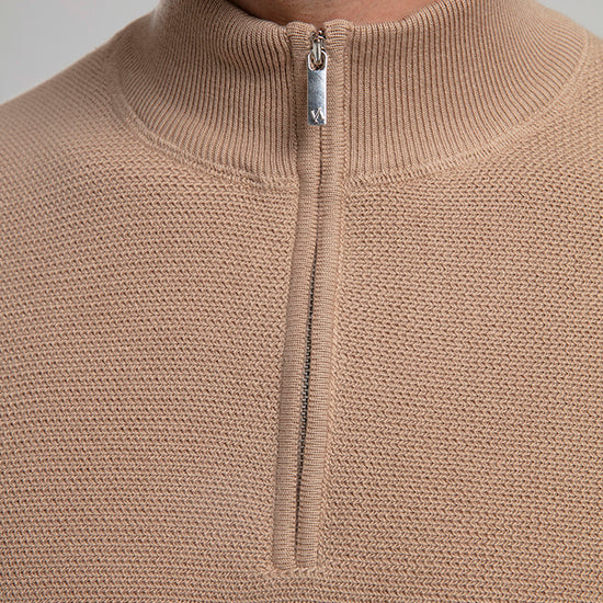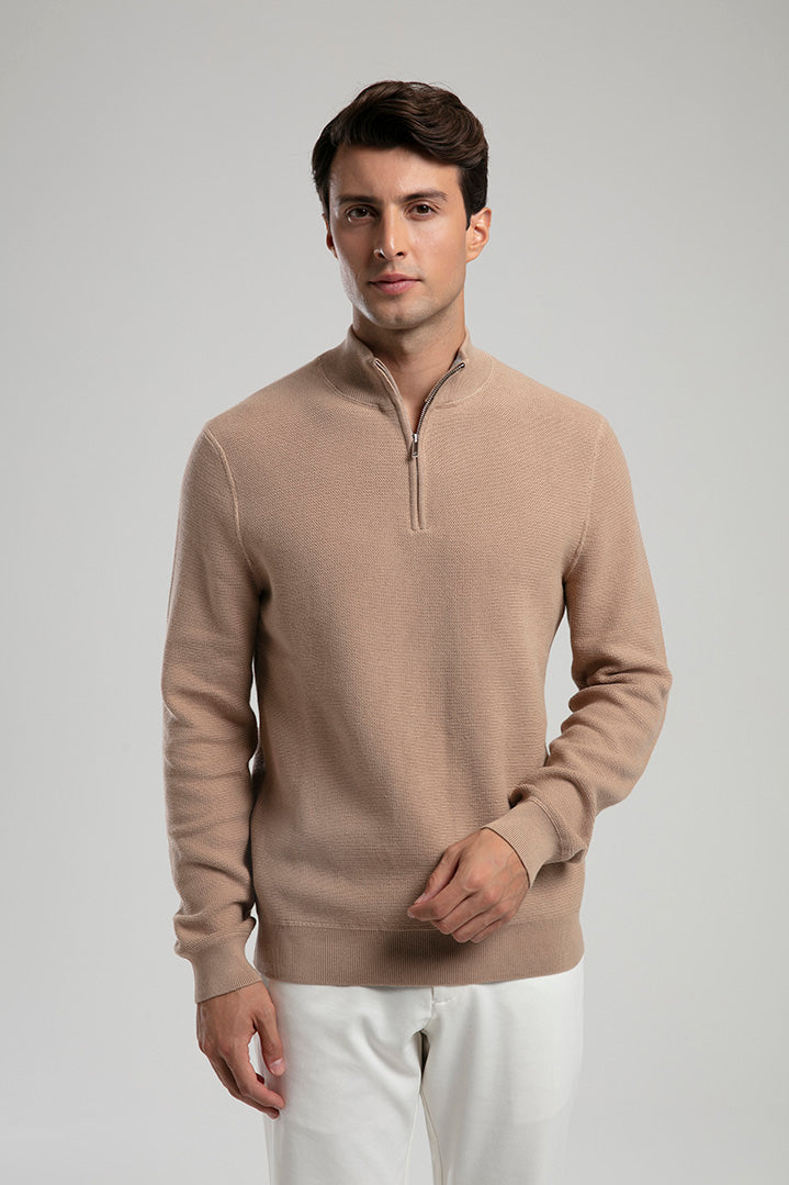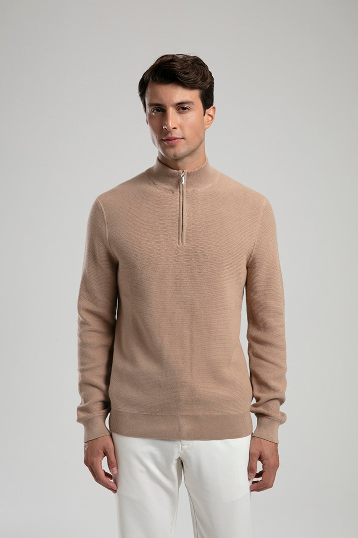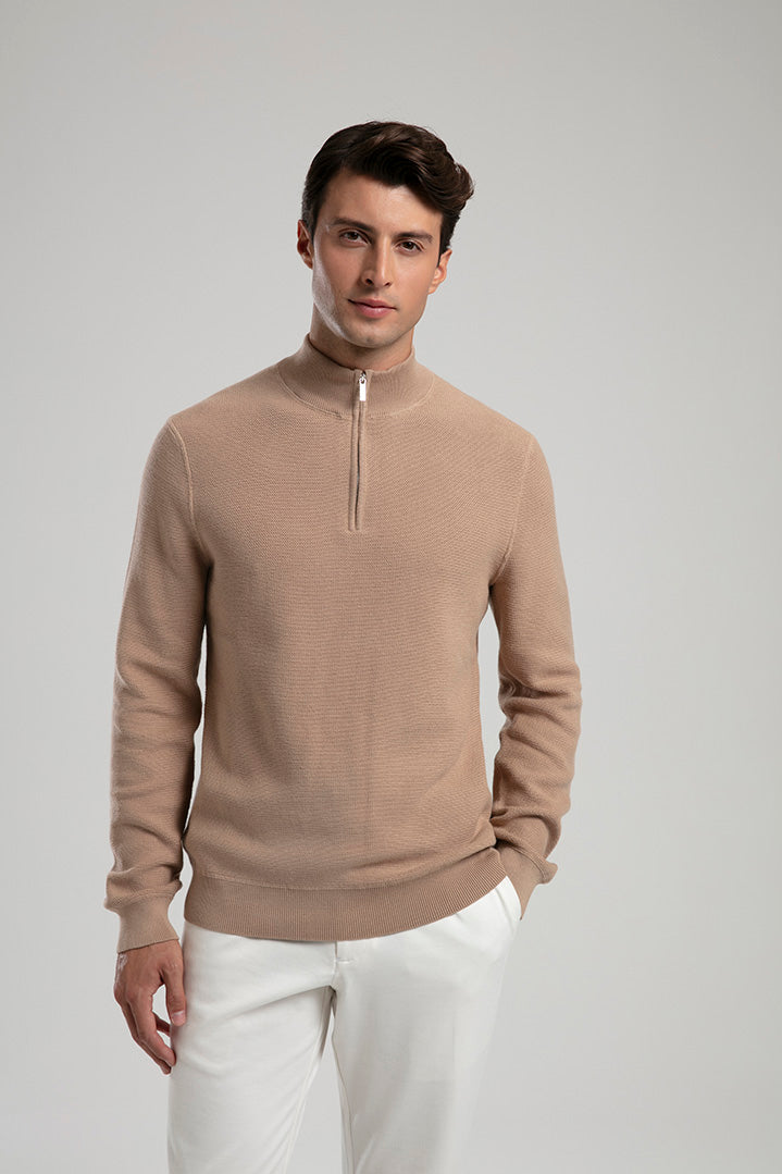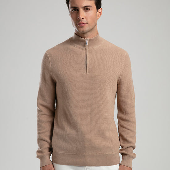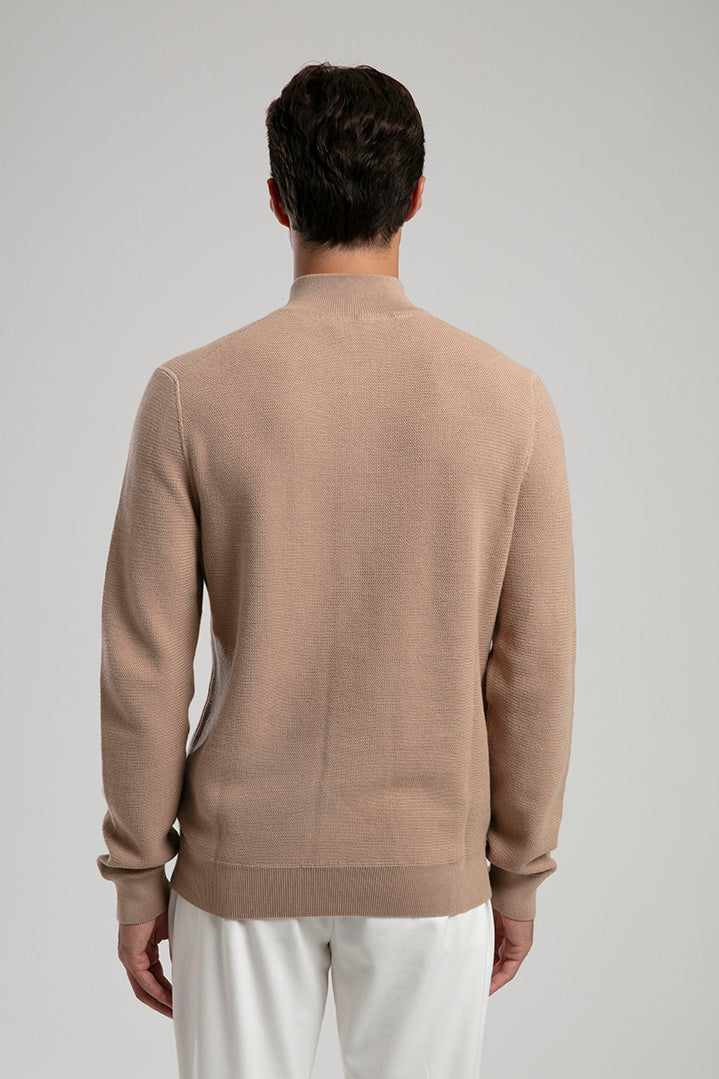 Half-Zip Knit Sweater - Beige