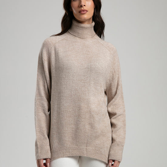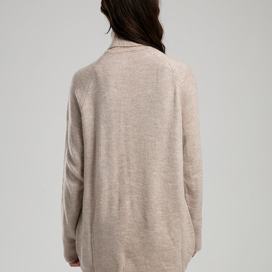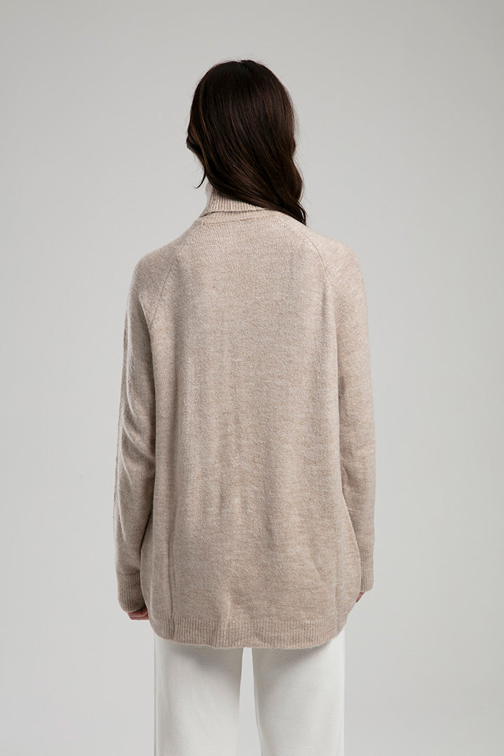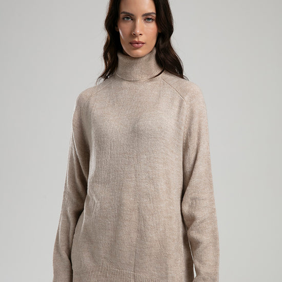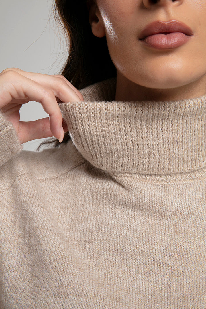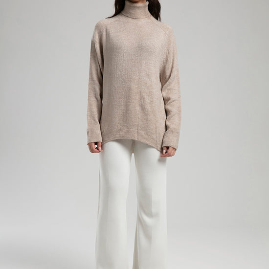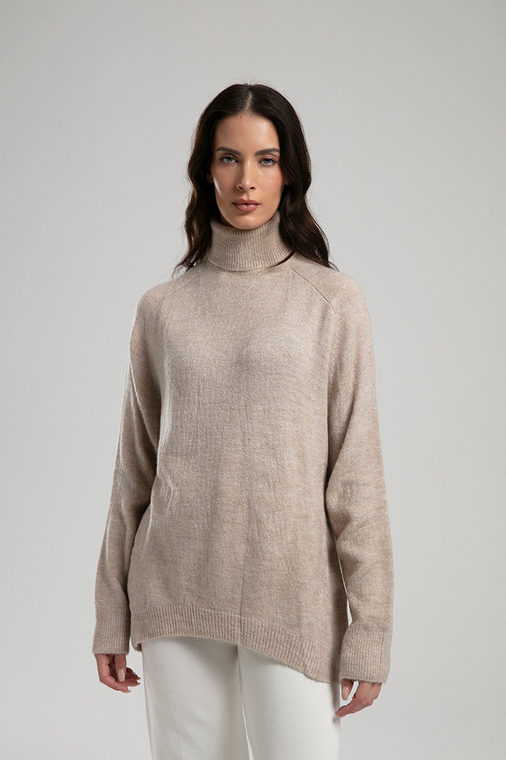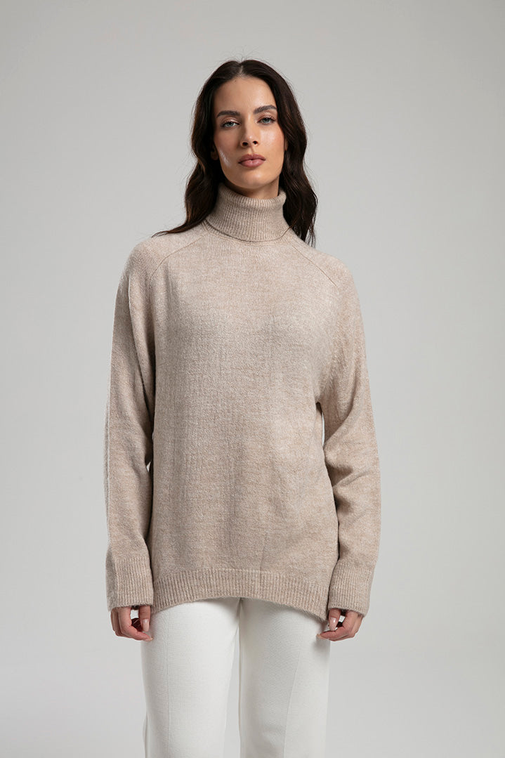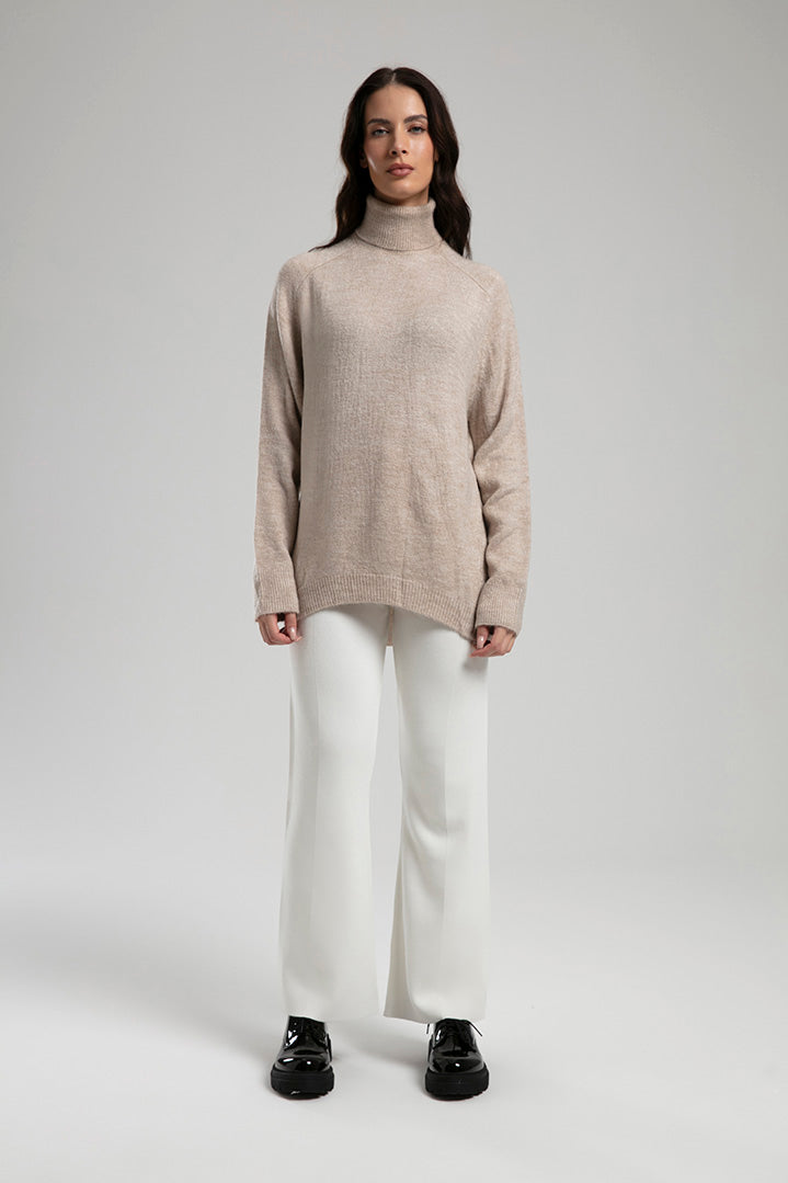 High-Neck Knit Sweater - Beige