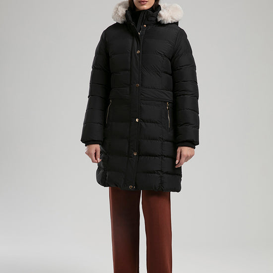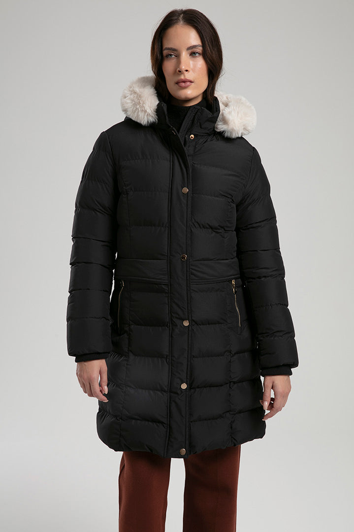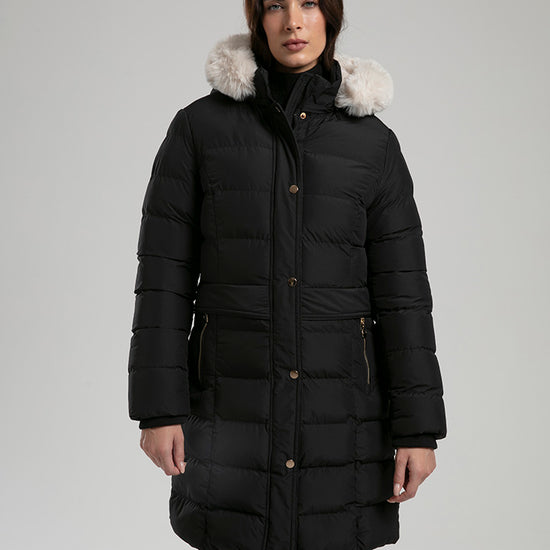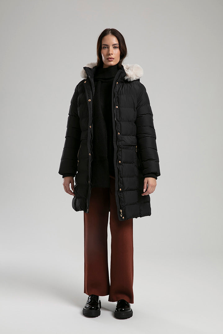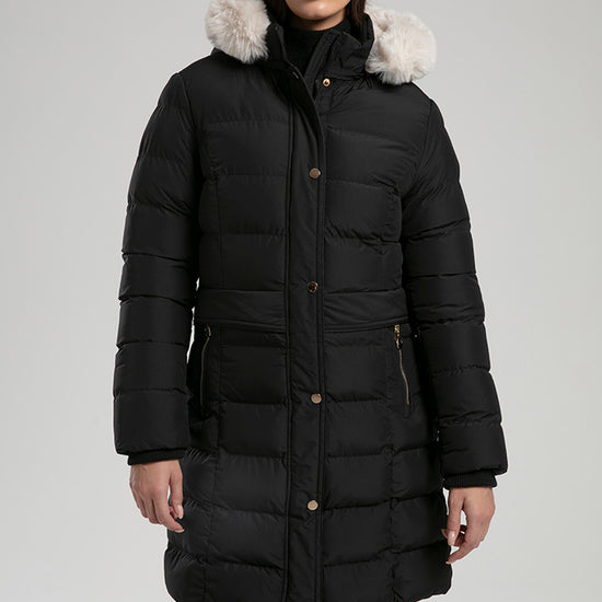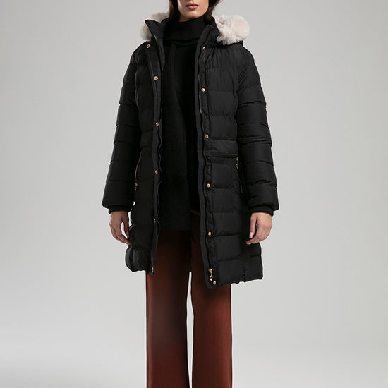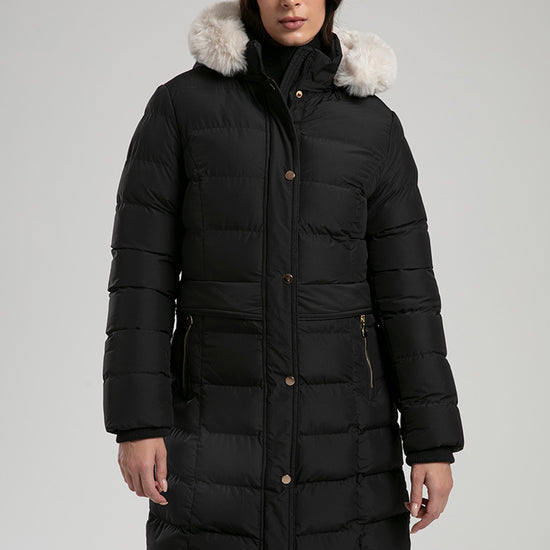 Crafted with a water-resistant outer shell and full-length coverage, this parka is perfect for keeping you warm during chilly commutes or snowy getaways. The gold-tone snap buttons and zipper closure provide a secure fit while adding a touch of sophistication. Finished with ribbed inner cuffs and side pockets for ultimate comfort and functionality.