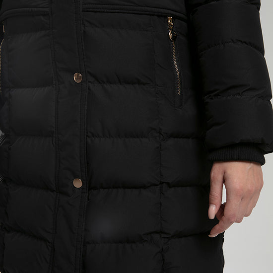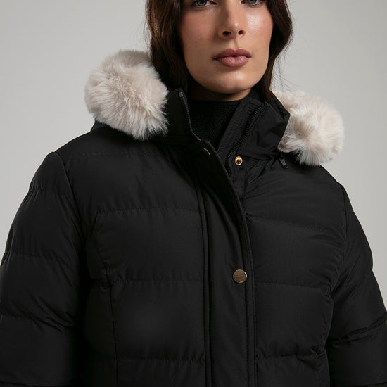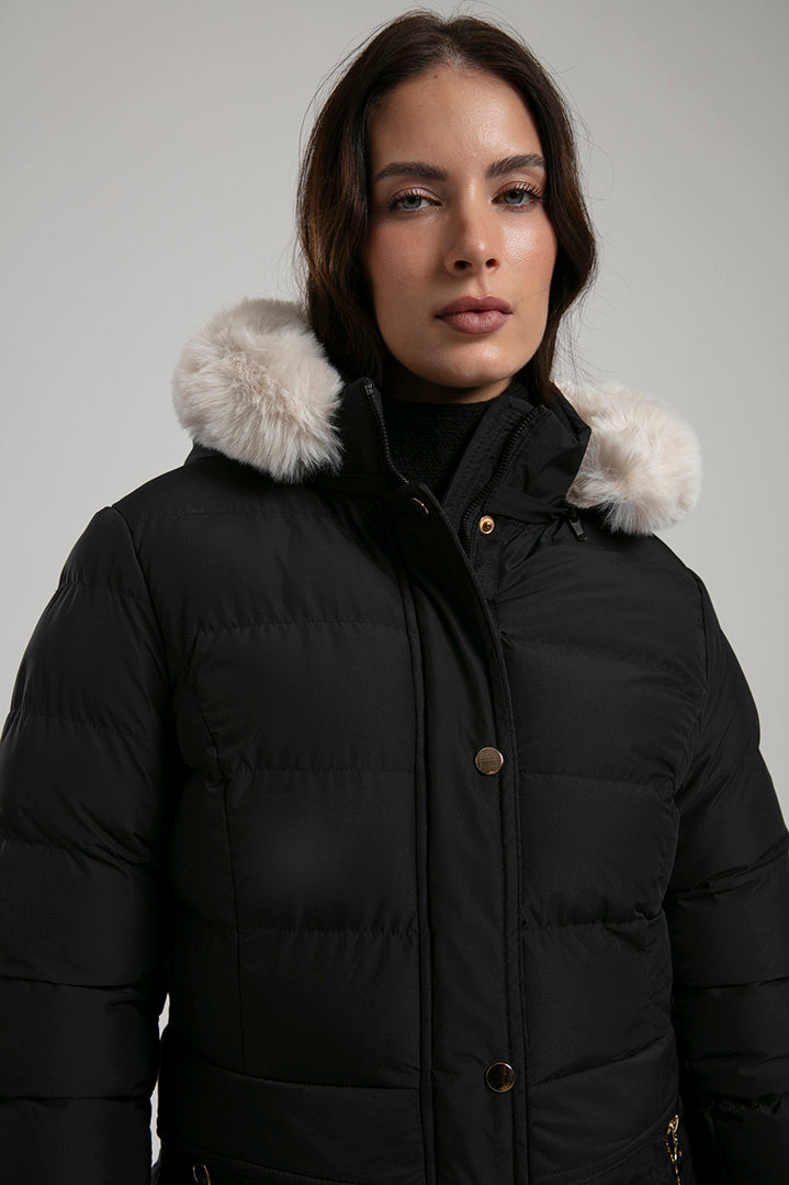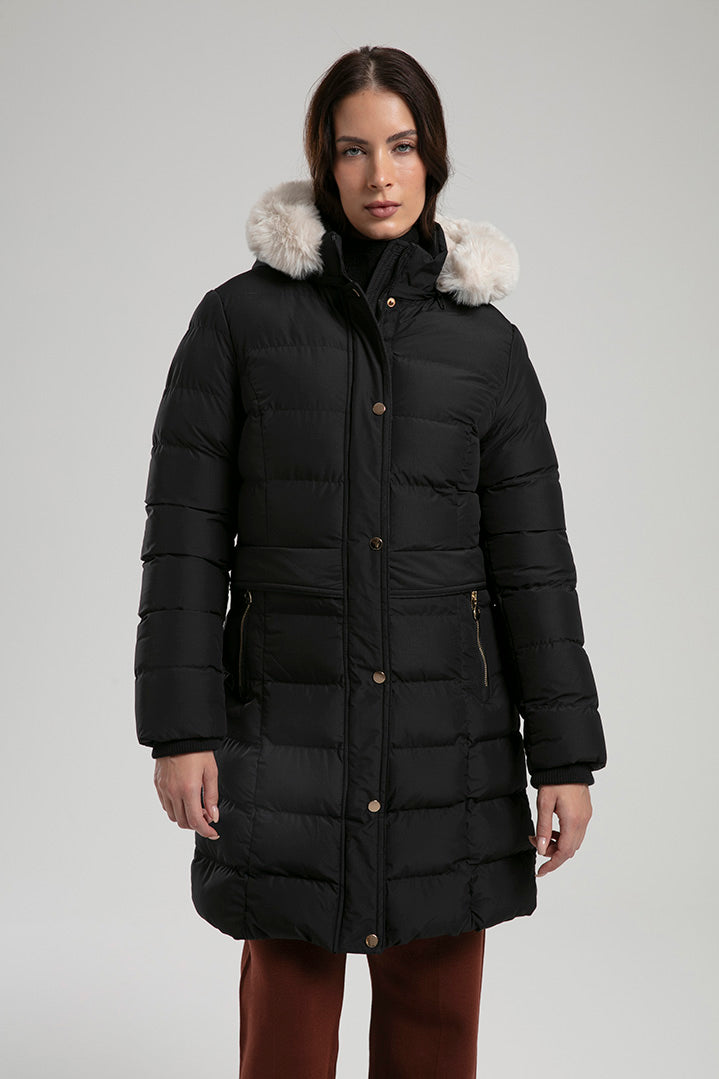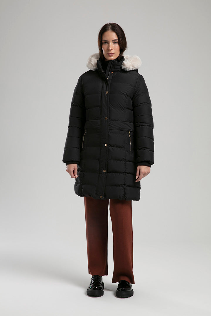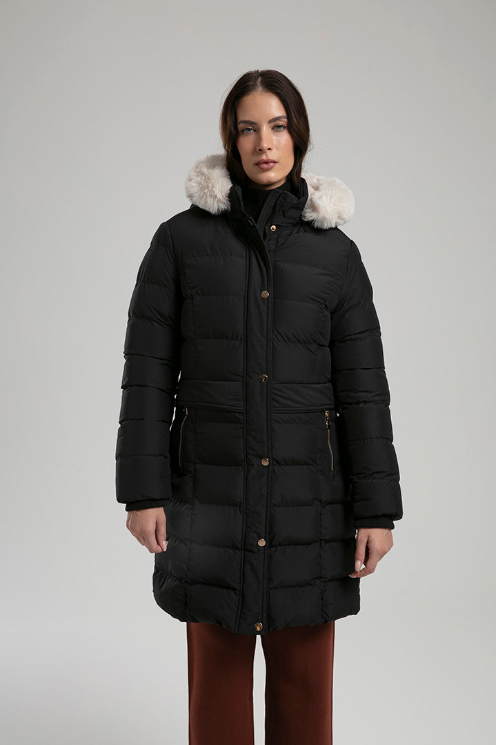 Crafted with a water-resistant outer shell and full-length coverage, this parka is perfect for keeping you warm during chilly commutes or snowy getaways. The gold-tone snap buttons and zipper closure provide a secure fit while adding a touch of sophistication. Finished with ribbed inner cuffs and side pockets for ultimate comfort and functionality.