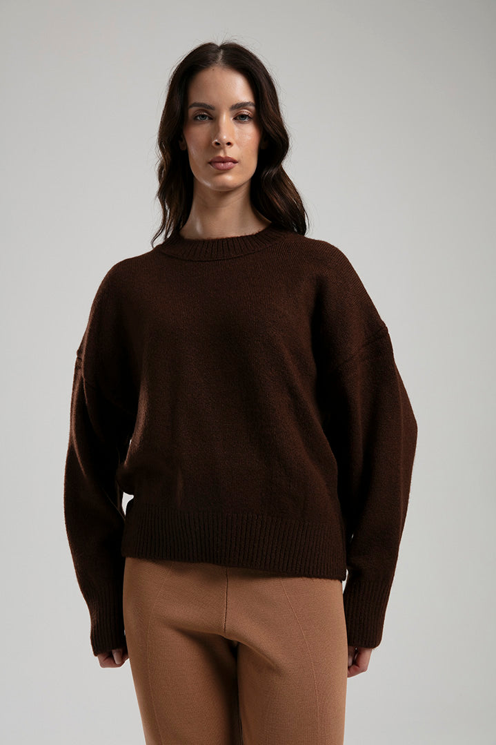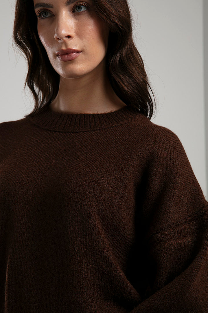 A cozy oversized sweater, crafted from a soft knit with ribbed trims. Designed with a relaxed silhouette, dropped shoulders, and a classic crew neckline, it combines comfort with modern style. Perfect for layering, it adds a warm and versatile touch to both casual and elevated looks.