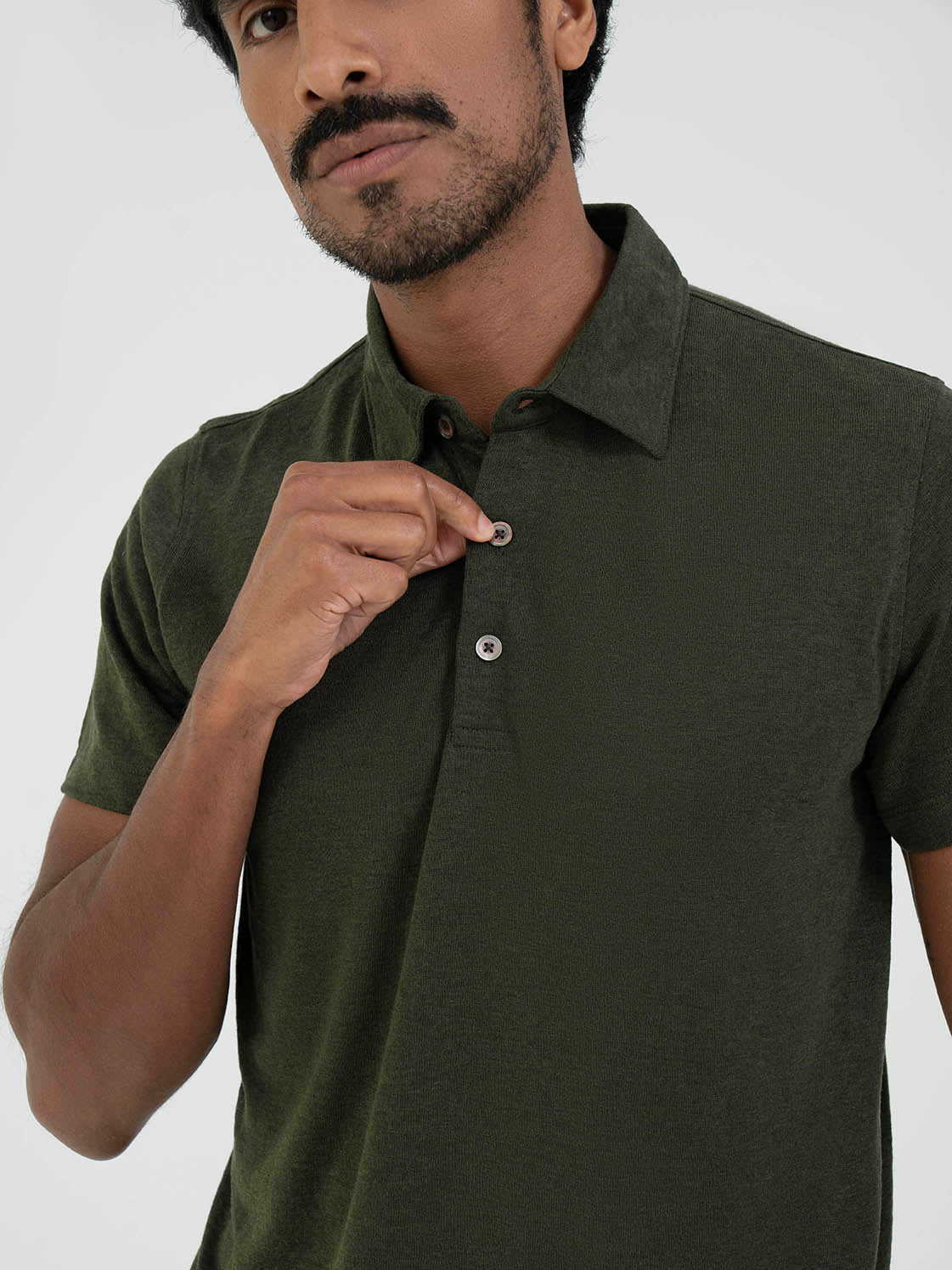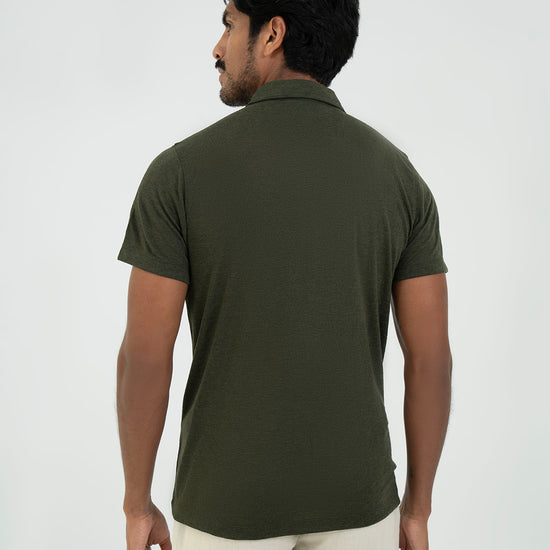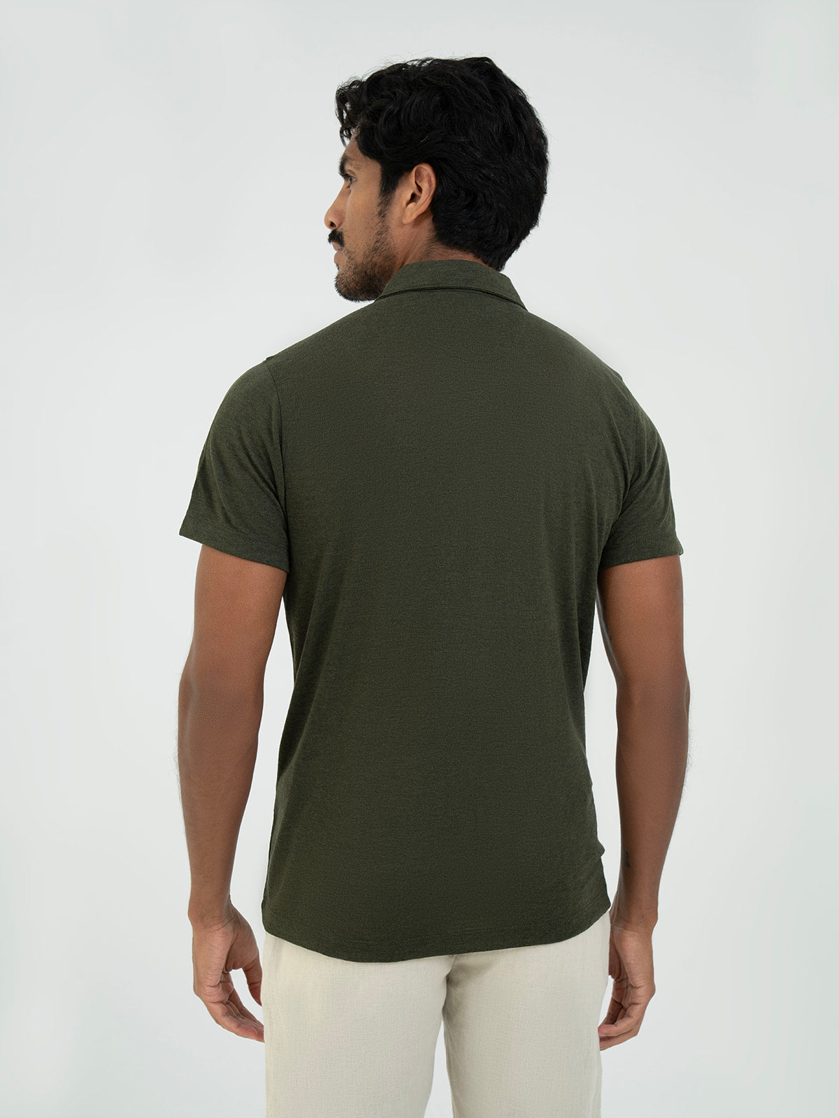 Redefine your warm-weather wardrobe with our Polo Linen T-shirt in a Rich Olive. Crafted from 100% premium high-gauge organic linen, this piece bridges the gap between a structured executive look and the airy ease of the Mediterranean. Unlike standard linen shirts, our fabric is engineered with a high-density weave for optimal opacity (non-see-through), ensuring a sharp, confident silhouette. Featuring a reinforced ribbed collar and a seamless three-button placket, this Olive Polo offers unrivaled breathability and moisture-wicking properties. Whether you’re at a coastal business lunch or an exclusive weekend retreat, this fade-resistant staple projects an aura of understated success and impeccable taste.