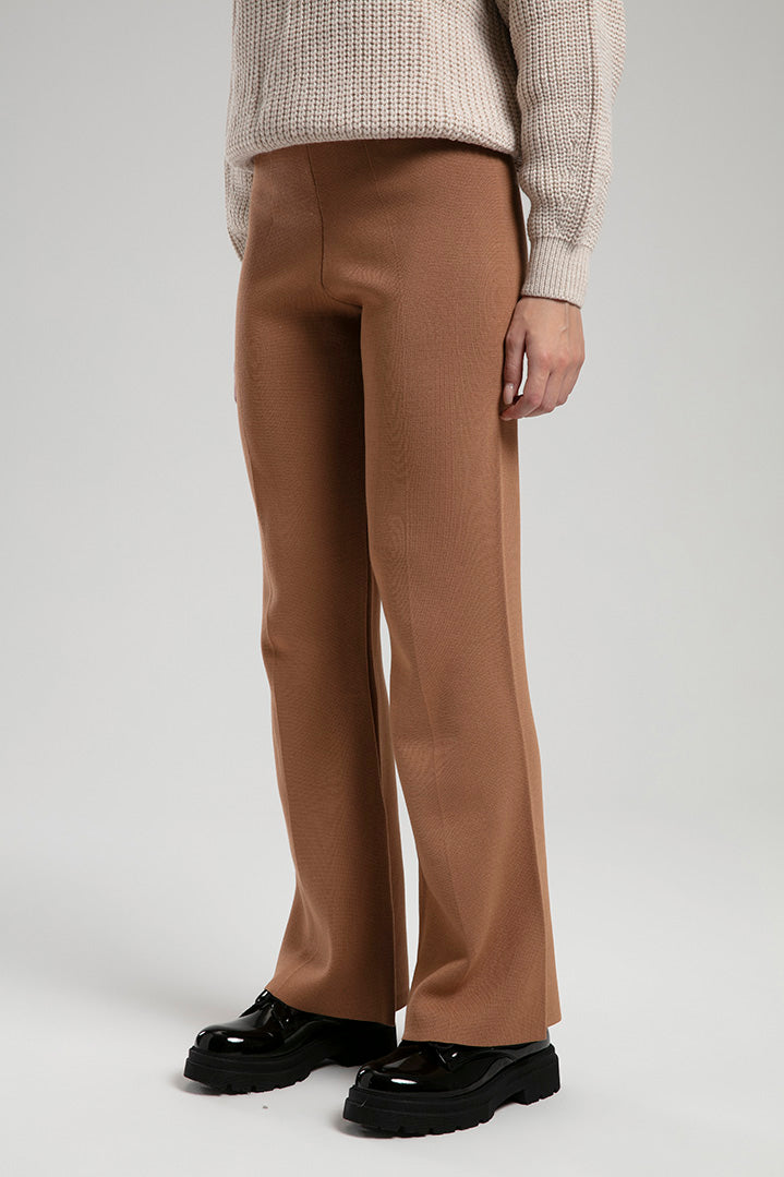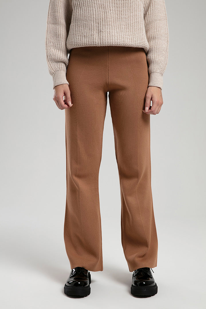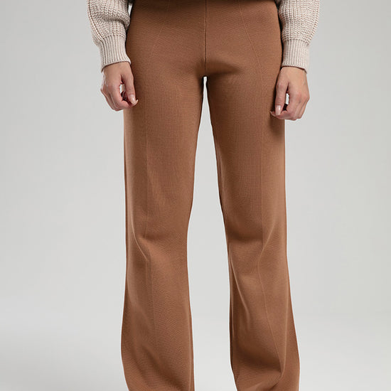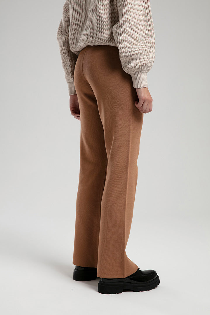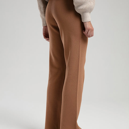These tailored trousers are designed with a flattering high waist and subtle front seam detailing for a structured silhouette. Crafted from a smooth fabric with a slight stretch, they balance comfort with sophistication. The straight-leg cut makes them versatile for both workwear and casual styling, pairing effortlessly with knits, shirts, or coats.