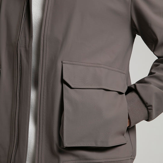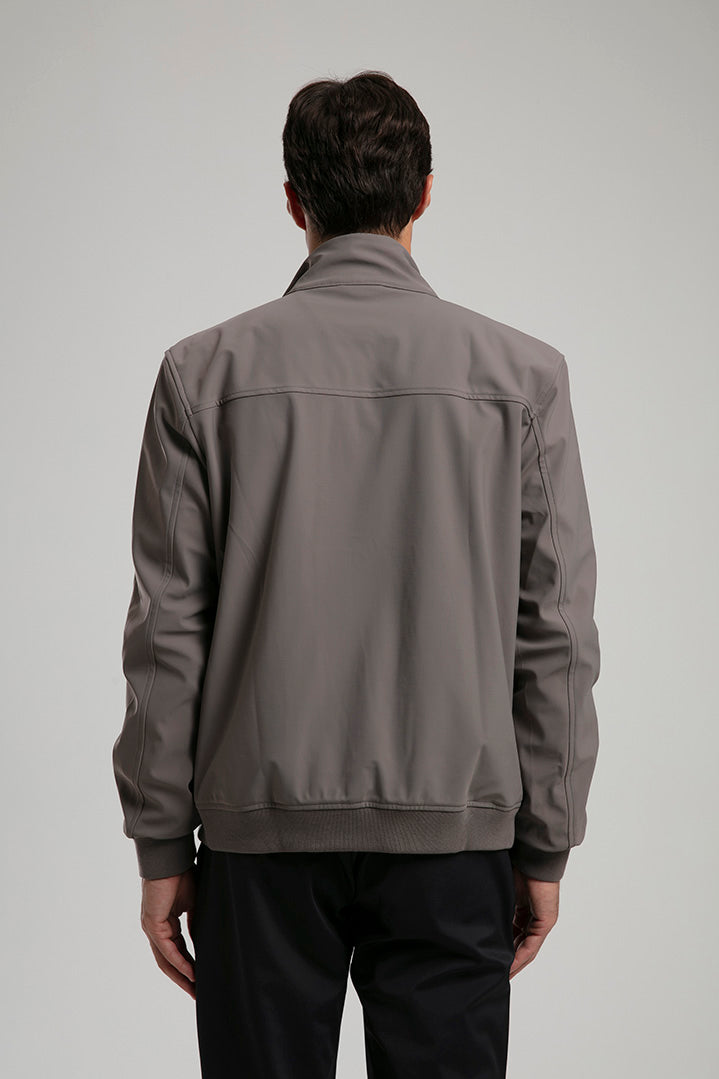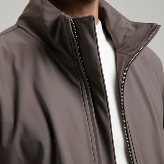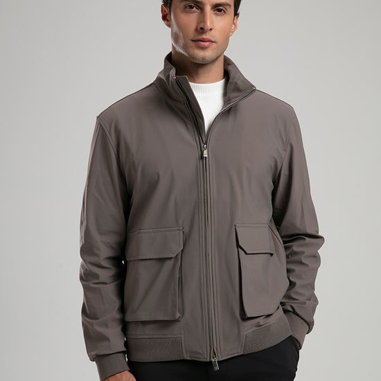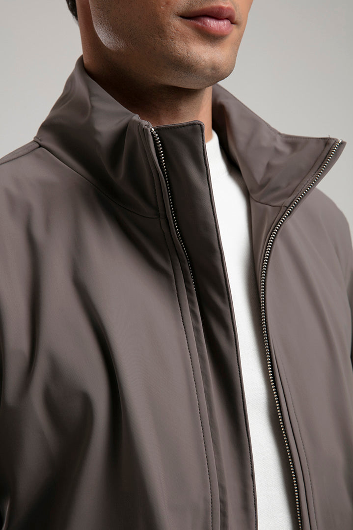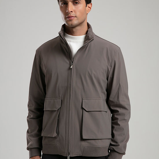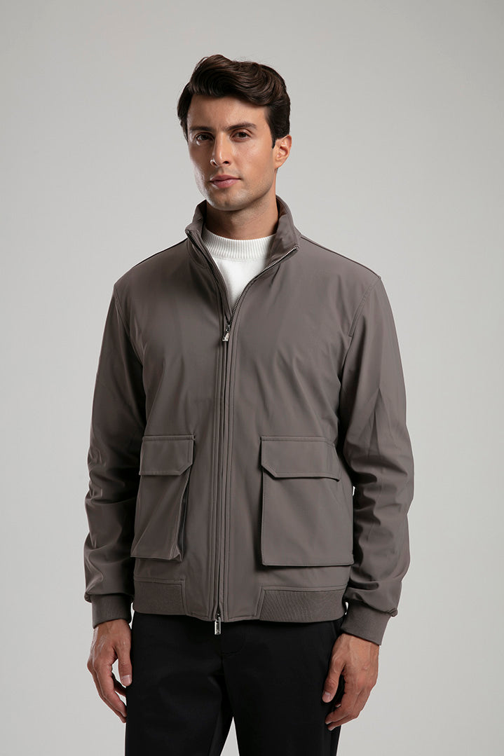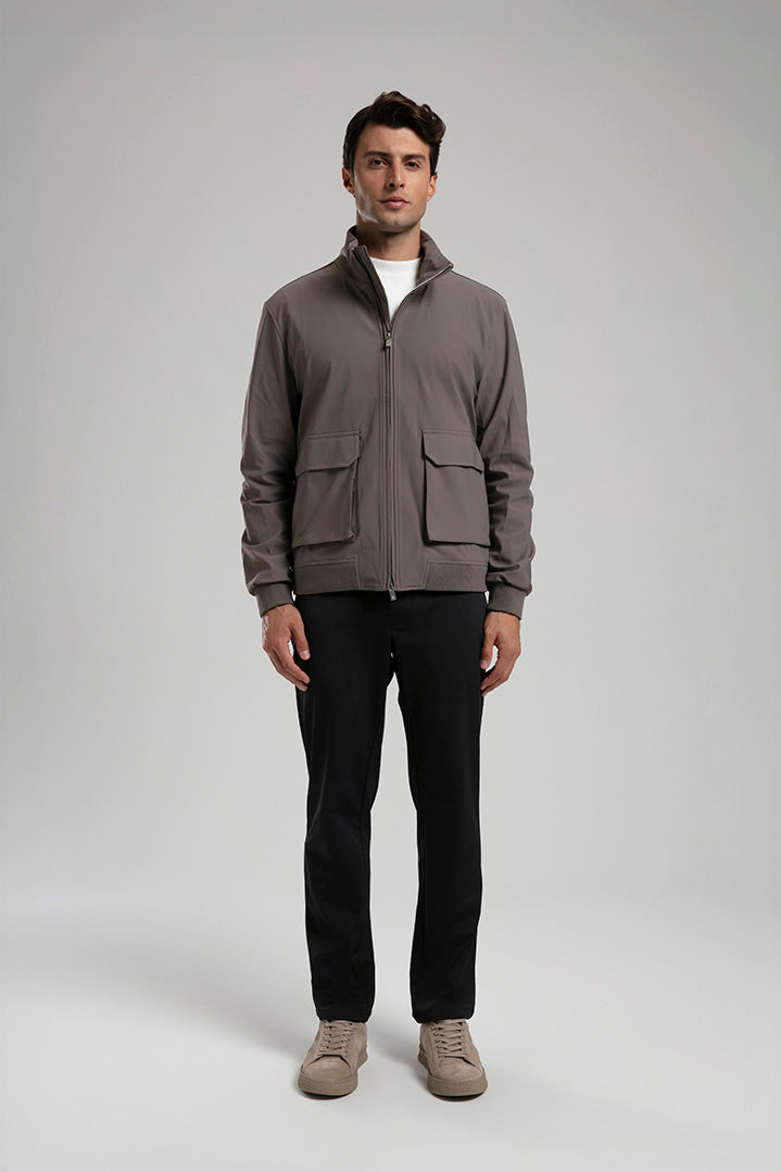 This taupe technical field jacket combines functionality with a refined aesthetic. Designed with a full zip closure and four spacious flap pockets, it offers both practicality and style. The high stand collar and ribbed hem provide added comfort and protection against the elements, while the sleek fabric finish ensures a polished look. Perfect for layering over casual or smart attire, this jacket is a versatile addition to any modern wardrobe.