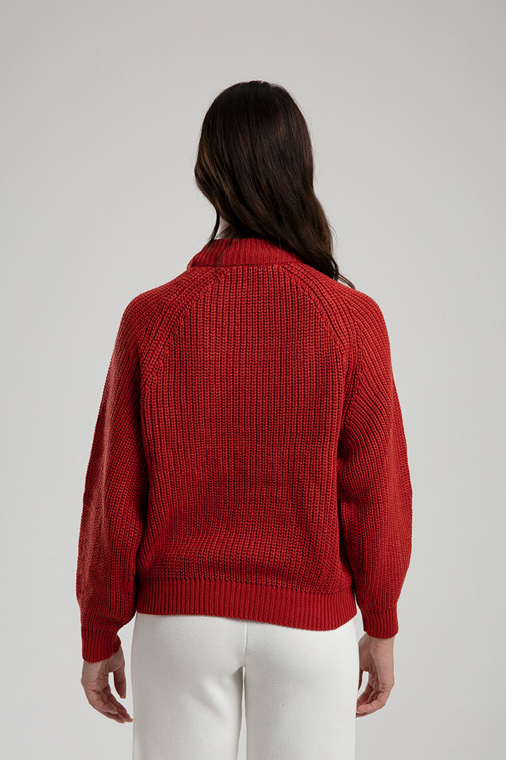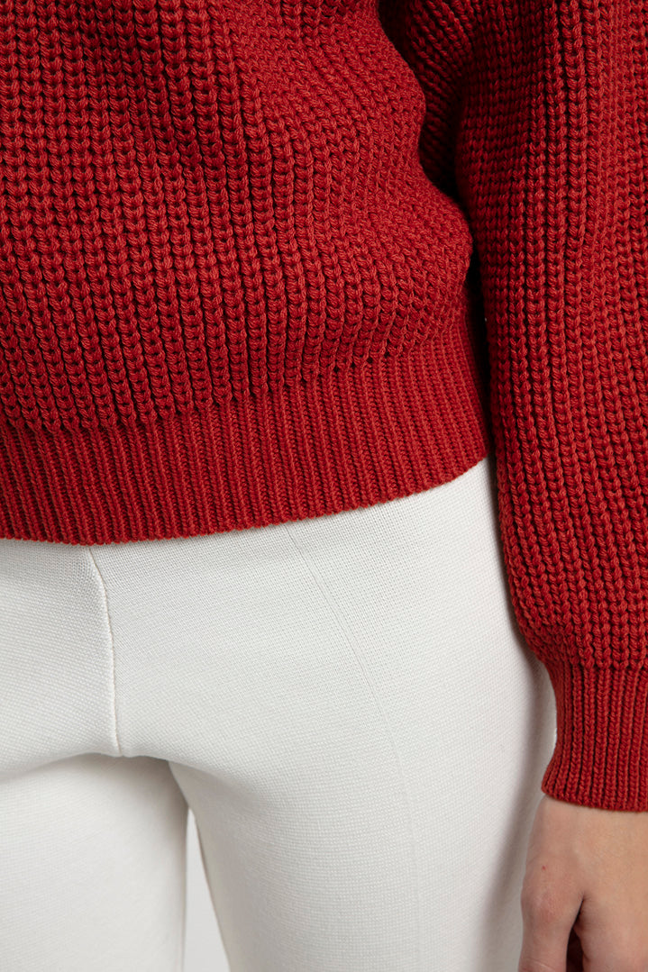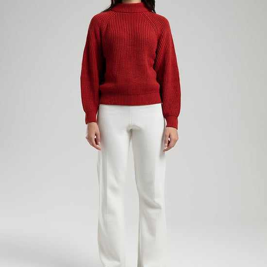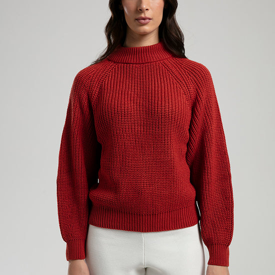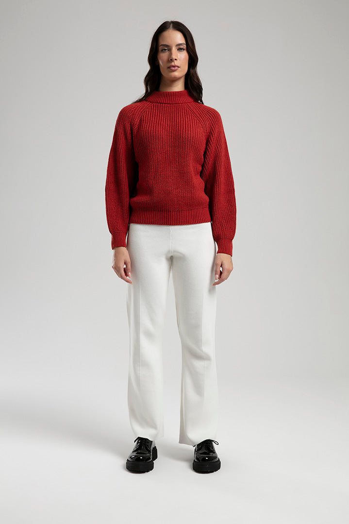A bold sweater designed in a chunky textured knit, offering both warmth and effortless style. Featuring a structured high neckline, long sleeves, and ribbed trims, it’s the perfect statement piece for layering. Ideal for pairing with tailored trousers or casual denim, adding a vibrant touch to your seasonal wardrobe.
