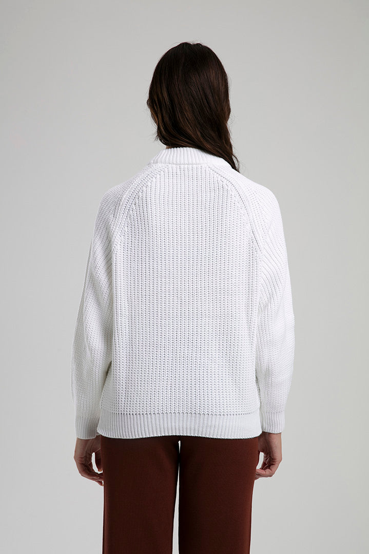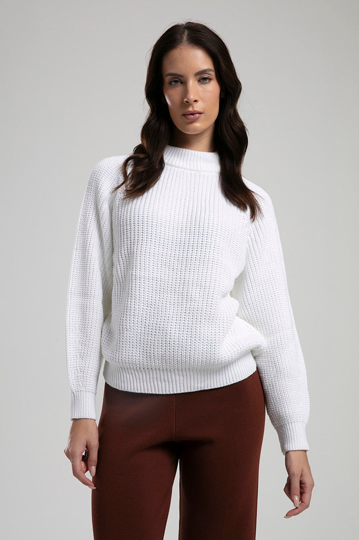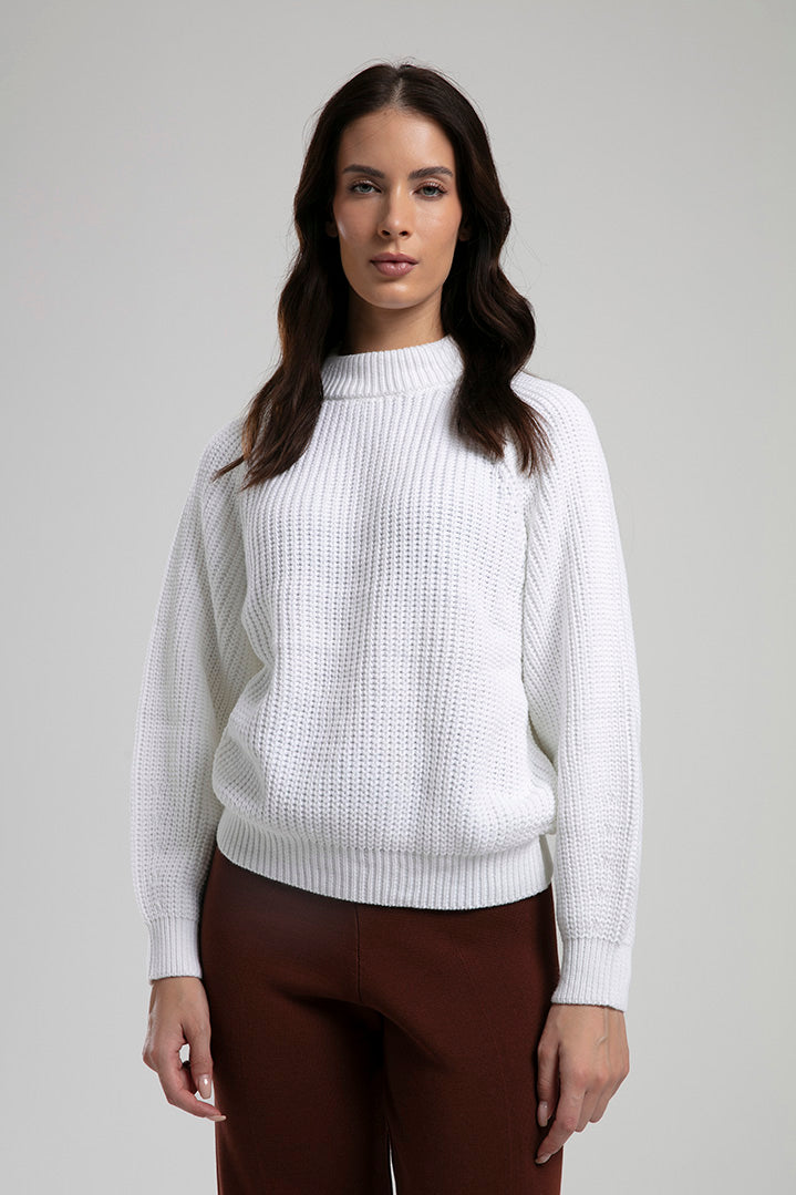 A bold sweater designed in a chunky textured knit, offering both warmth and effortless style. Featuring a structured high neckline, long sleeves, and ribbed trims, it’s the perfect statement piece for layering. Ideal for pairing with tailored trousers or casual denim, adding a vibrant touch to your seasonal wardrobe.