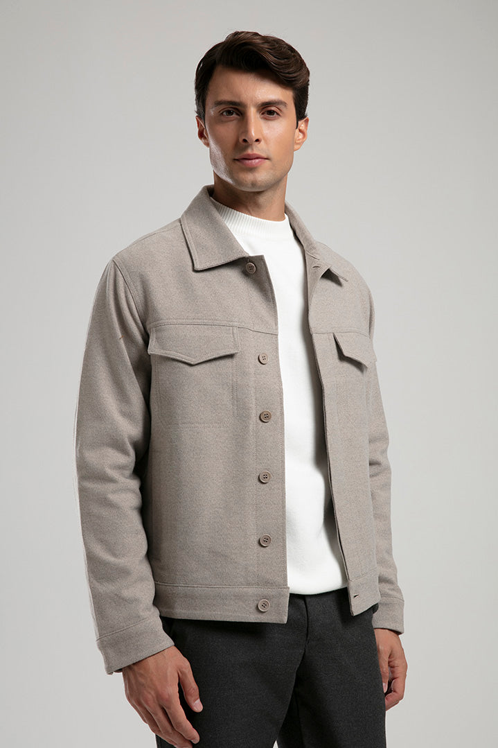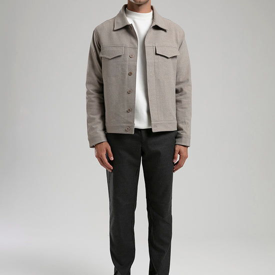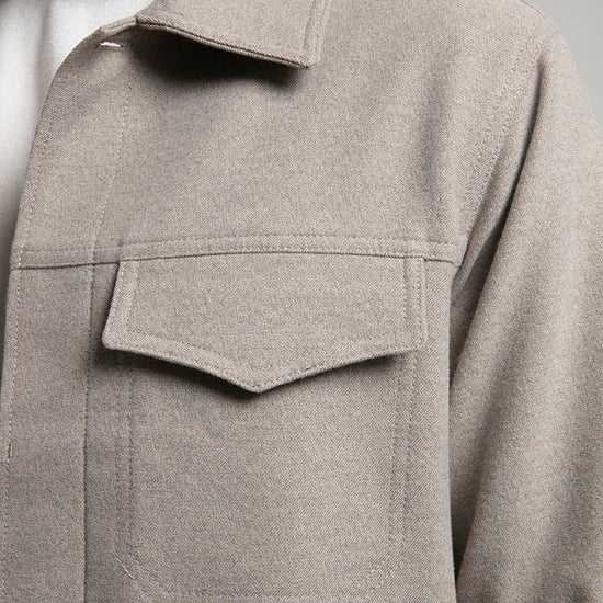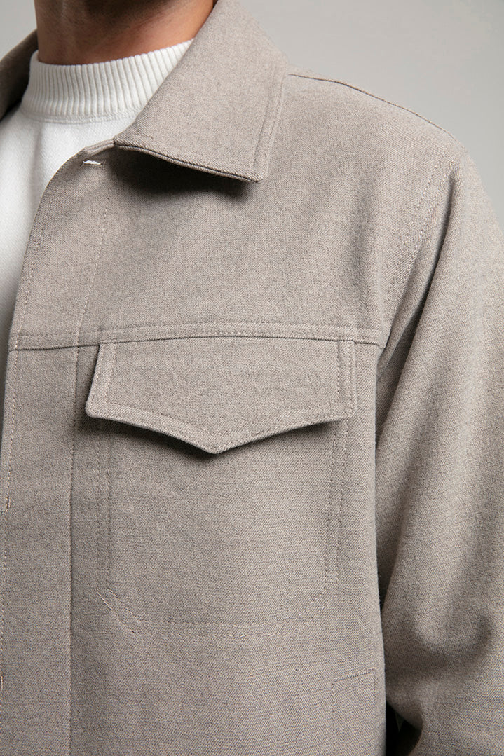 This utility overshirt jacket brings together casual structure and modern refinement. Designed with a button-front closure, pointed collar, and dual flap chest pockets, it delivers both function and style. The lightweight yet sturdy fabric makes it a versatile layering piece—ideal for transitioning between seasons. Pair it effortlessly with chinos or denim for a smart-casual look that works from day to night.