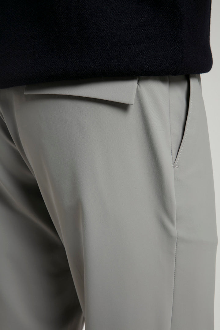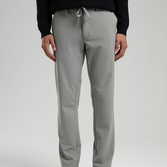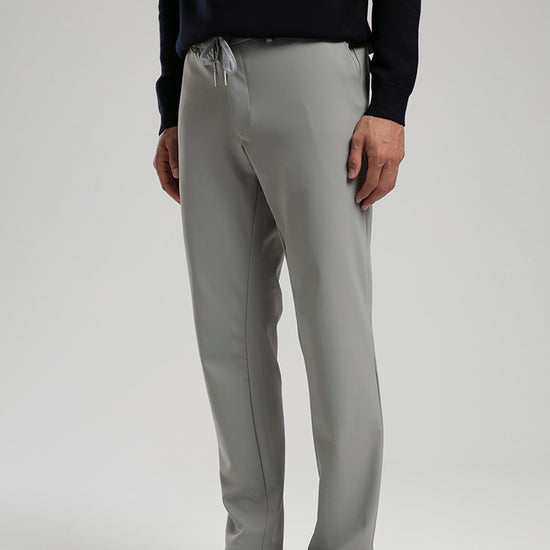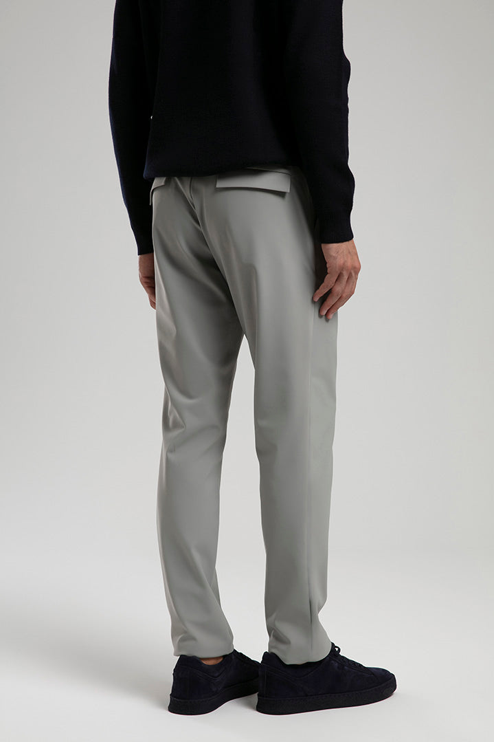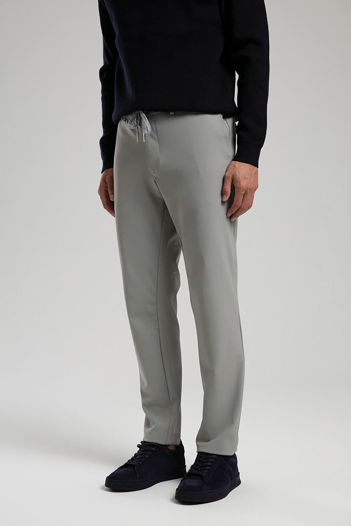 Stay sharp and comfortable in these taupe slim-fit trousers, crafted with waterproof fabric for all-weather versatility. Featuring a sleek drawstring waistband for a modern tailored fit, they combine function and style effortlessly. Perfect for both casual outings and smart-casual occasions, these trousers keep you looking polished while offering reliable protection from unexpected showers.