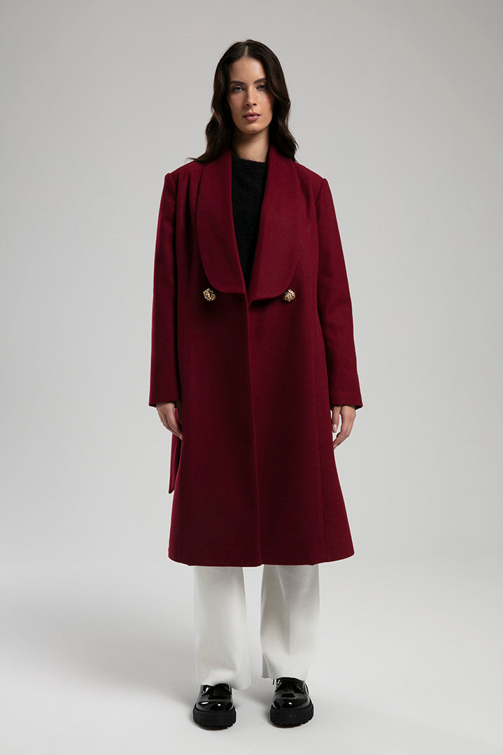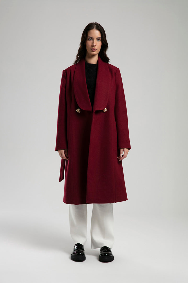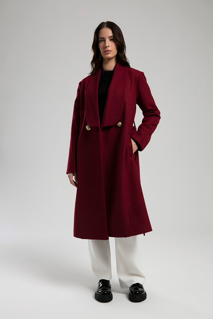 Elevate your outerwear with this timeless camel wool coat, designed with a modern yet elegant silhouette. Featuring a relaxed tailored fit, wide shawl lapels, and statement gold-tone buttons, this coat blends sophistication with everyday versatility. The longline cut offers full coverage and effortless layering, making it perfect for both workwear and casual ensembles. Crafted from a soft, warm wool blend, it ensures comfort and durability through the colder seasons. Pair it with tailored trousers for a polished look or style over denim for understated chic