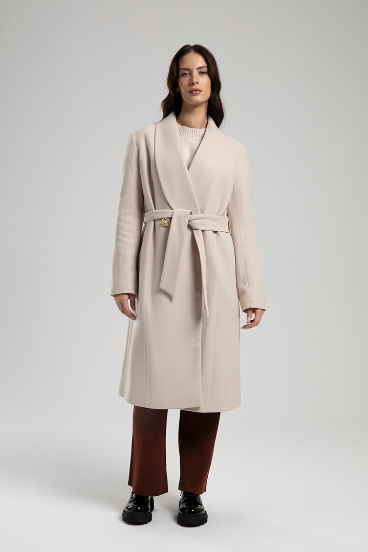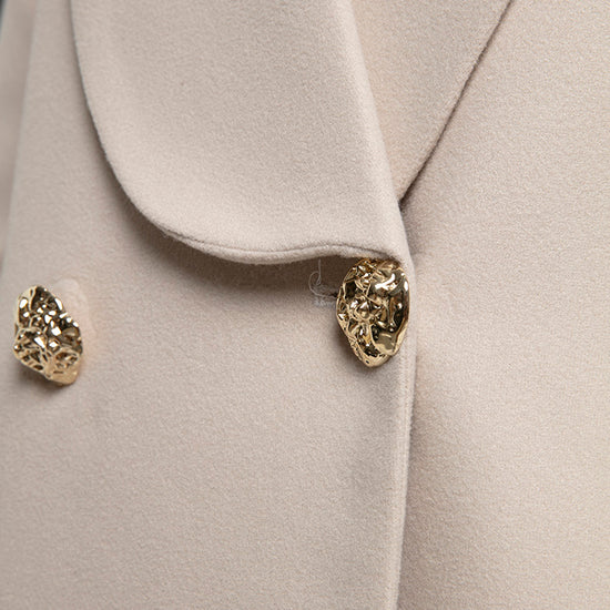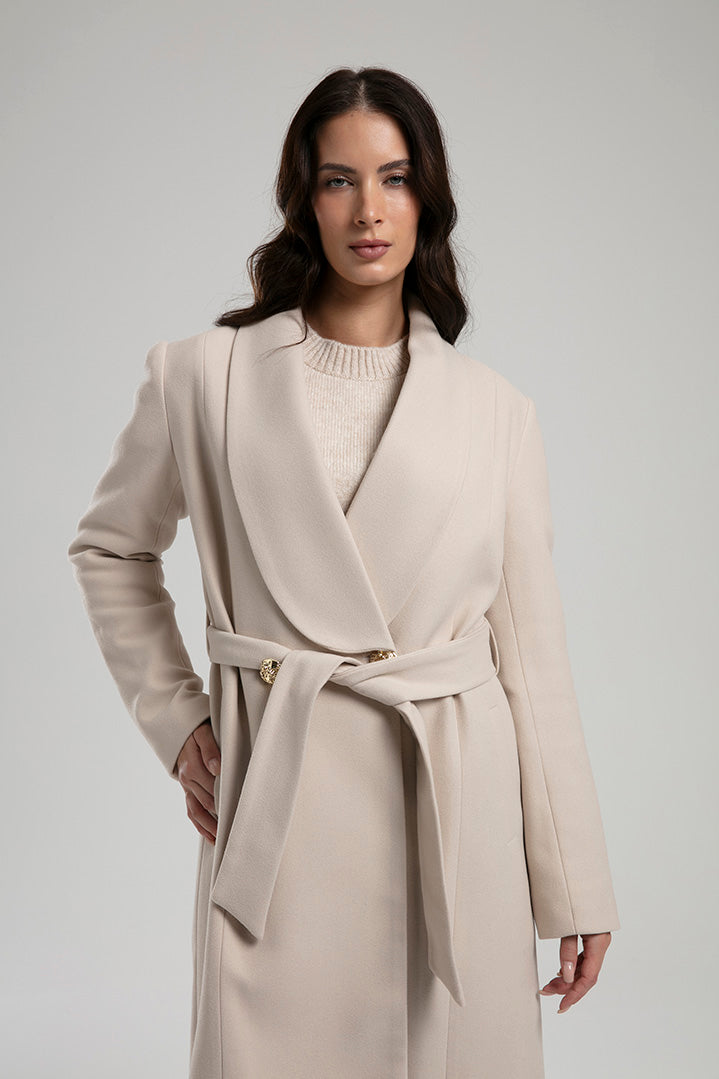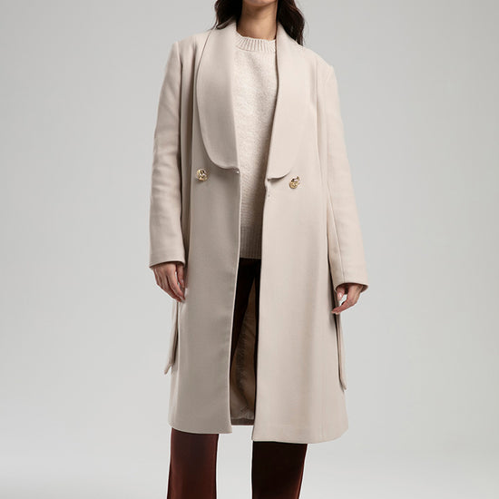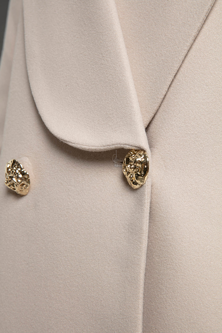 Elevate your outerwear with this timeless camel wool coat, designed with a modern yet elegant silhouette. Featuring a relaxed tailored fit, wide shawl lapels, and statement gold-tone buttons, this coat blends sophistication with everyday versatility. The longline cut offers full coverage and effortless layering, making it perfect for both workwear and casual ensembles. Crafted from a soft, warm wool blend, it ensures comfort and durability through the colder seasons. Pair it with tailored trousers for a polished look or style over denim for understated chic