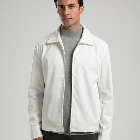 Sleek and versatile, this zip-up jacket is designed for modern sophistication. Featuring a sharp spread collar, smooth front zip closure, and discreet side pockets, it combines functionality with understated elegance. The structured silhouette makes it suitable for both casual layering and smart-casual occasions, ensuring timeless style that adapts to every wardrobe.