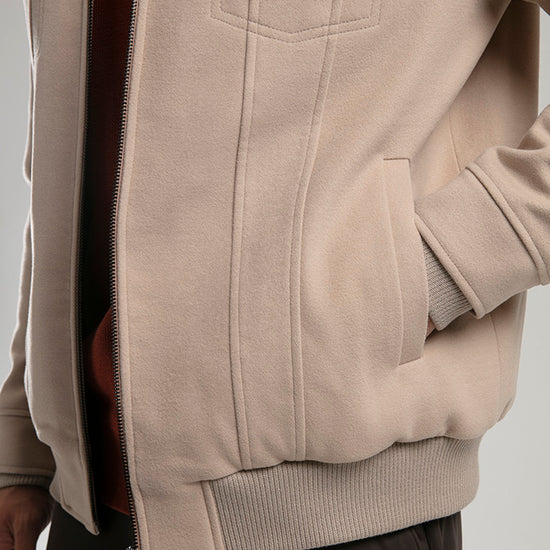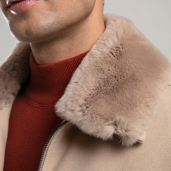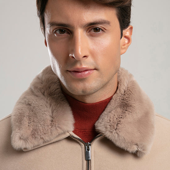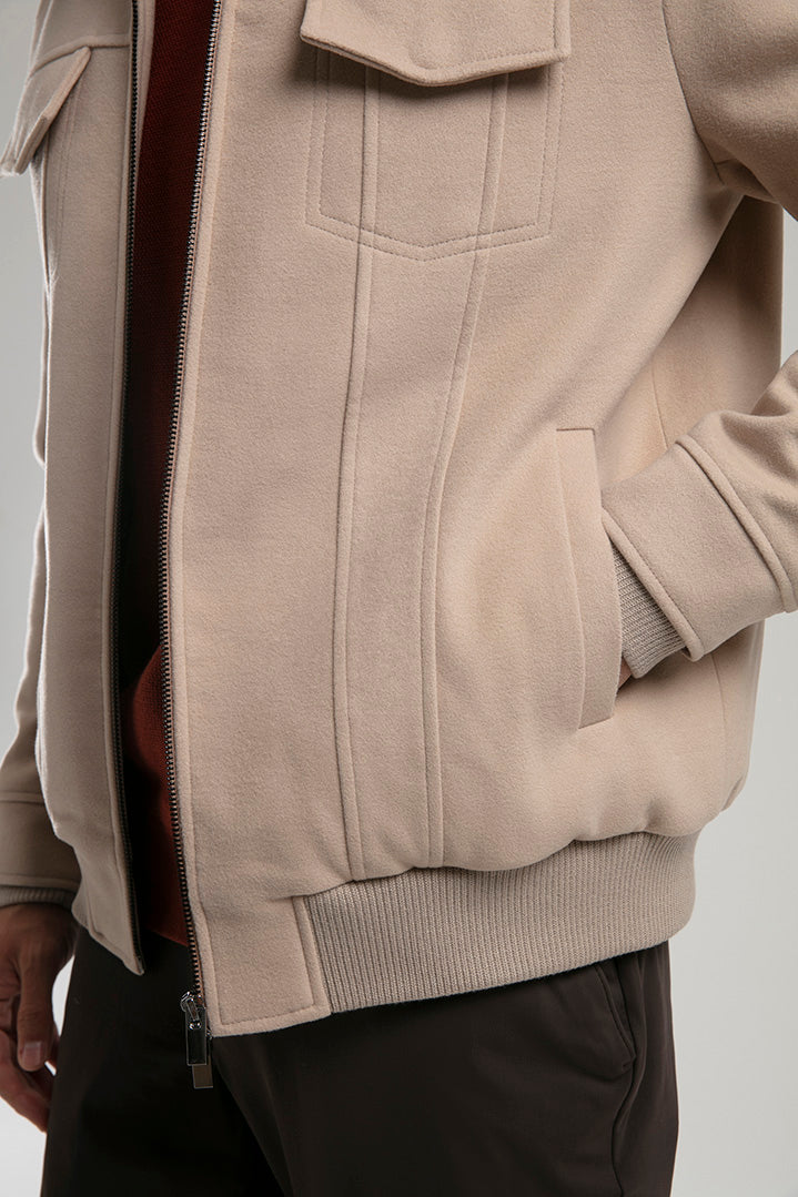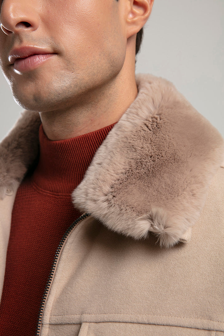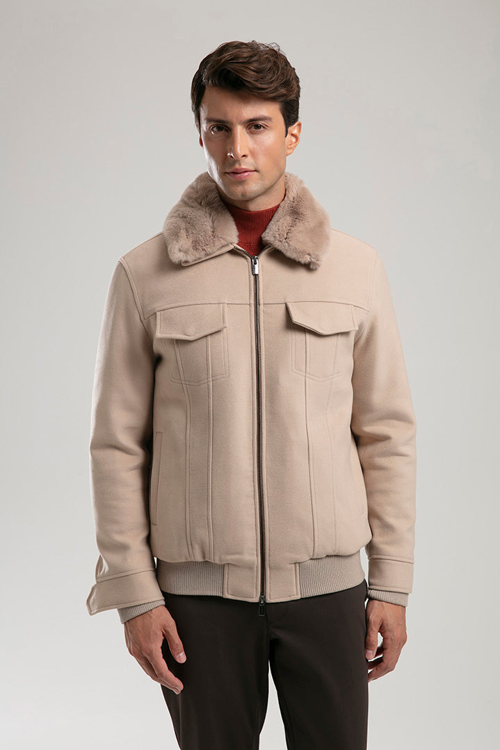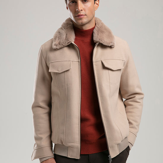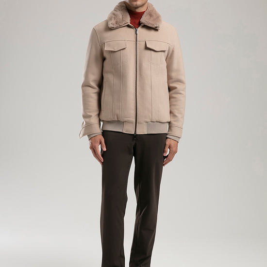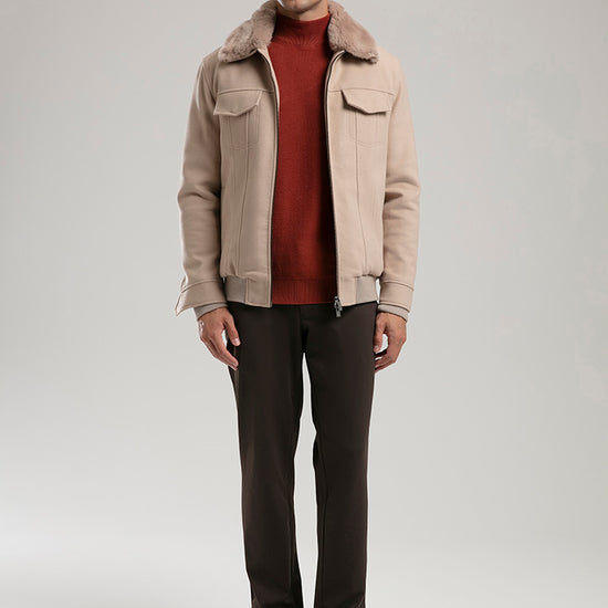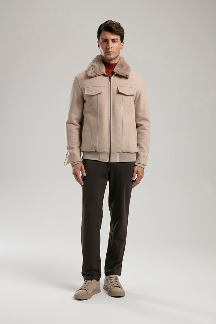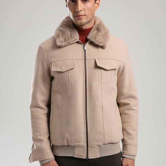 A sleek jacket designed with a modern zip-up front and a soft faux fur collar for added warmth and style. Featuring flap chest pockets, tailored seam detailing, and ribbed hems, it balances structure with comfort. Perfect for smart-casual layering, this jacket brings a refined edge to both day and evening looks.