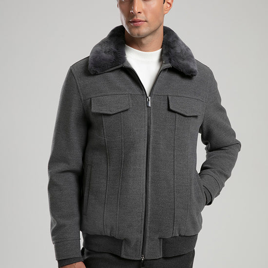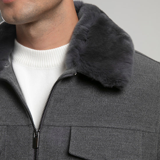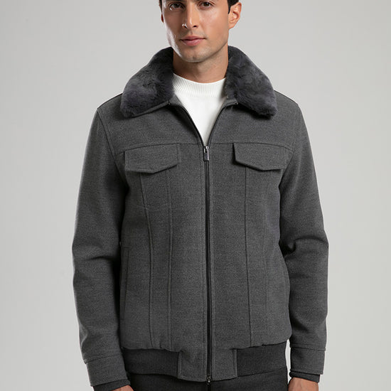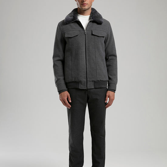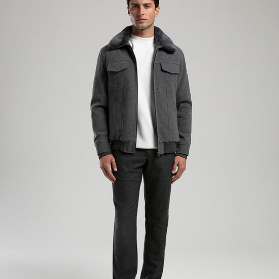 A sleek jacket designed with a modern zip-up front and a soft faux fur collar for added warmth and style. Featuring flap chest pockets, tailored seam detailing, and ribbed hems, it balances structure with comfort. Perfect for smart-casual layering, this jacket brings a refined edge to both day and evening looks.