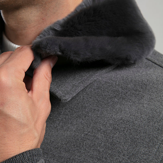 Zip-Up Jacket with Faux Fur Collar - Grey