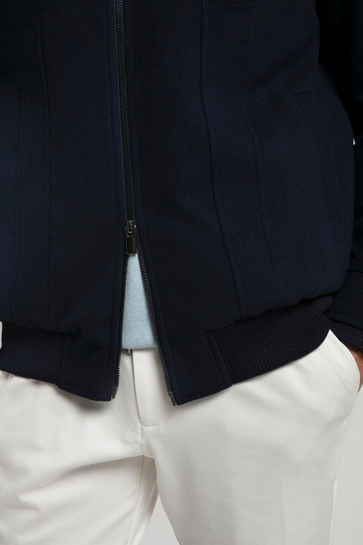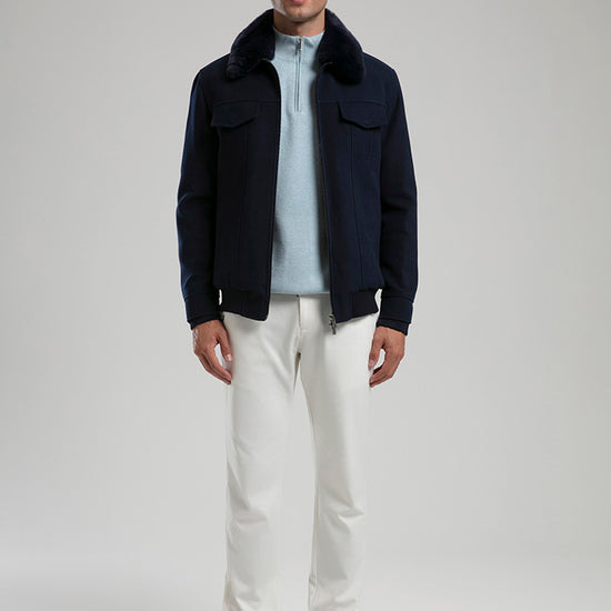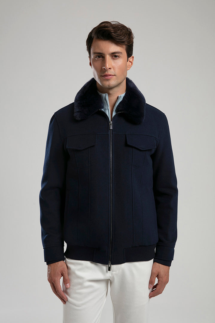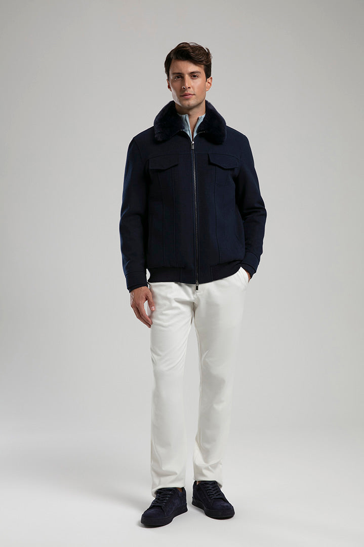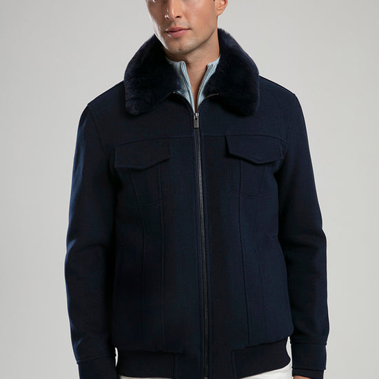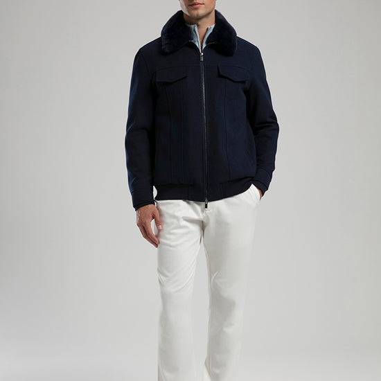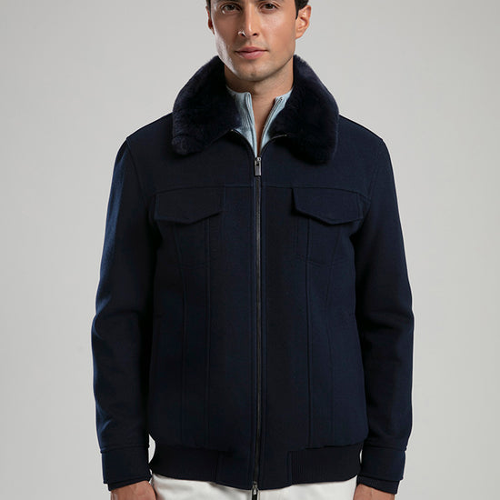 A sleek jacket designed with a modern zip-up front and a soft faux fur collar for added warmth and style. Featuring flap chest pockets, tailored seam detailing, and ribbed hems, it balances structure with comfort. Perfect for smart-casual layering, this jacket brings a refined edge to both day and evening looks.