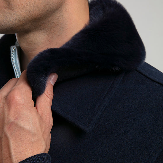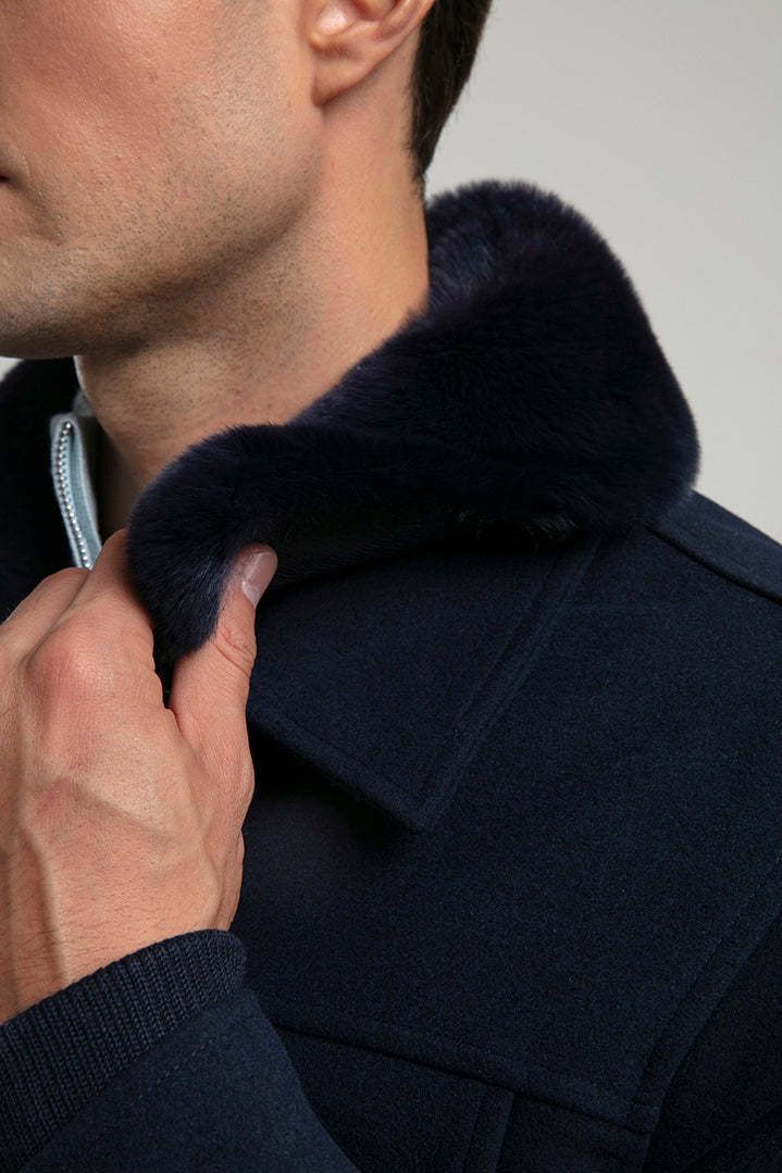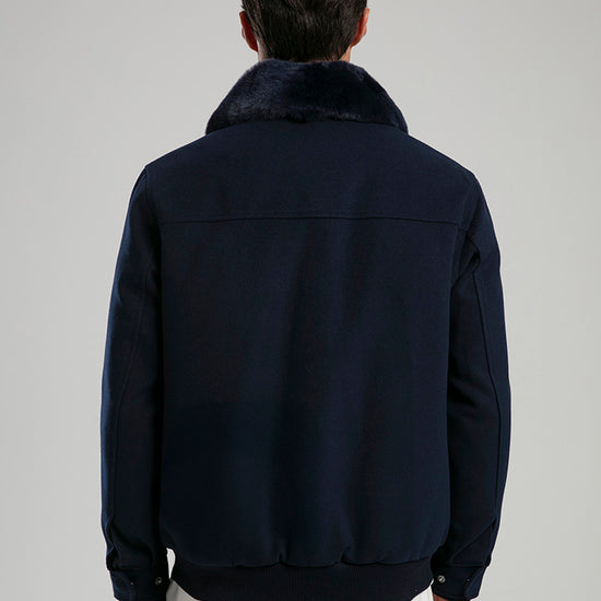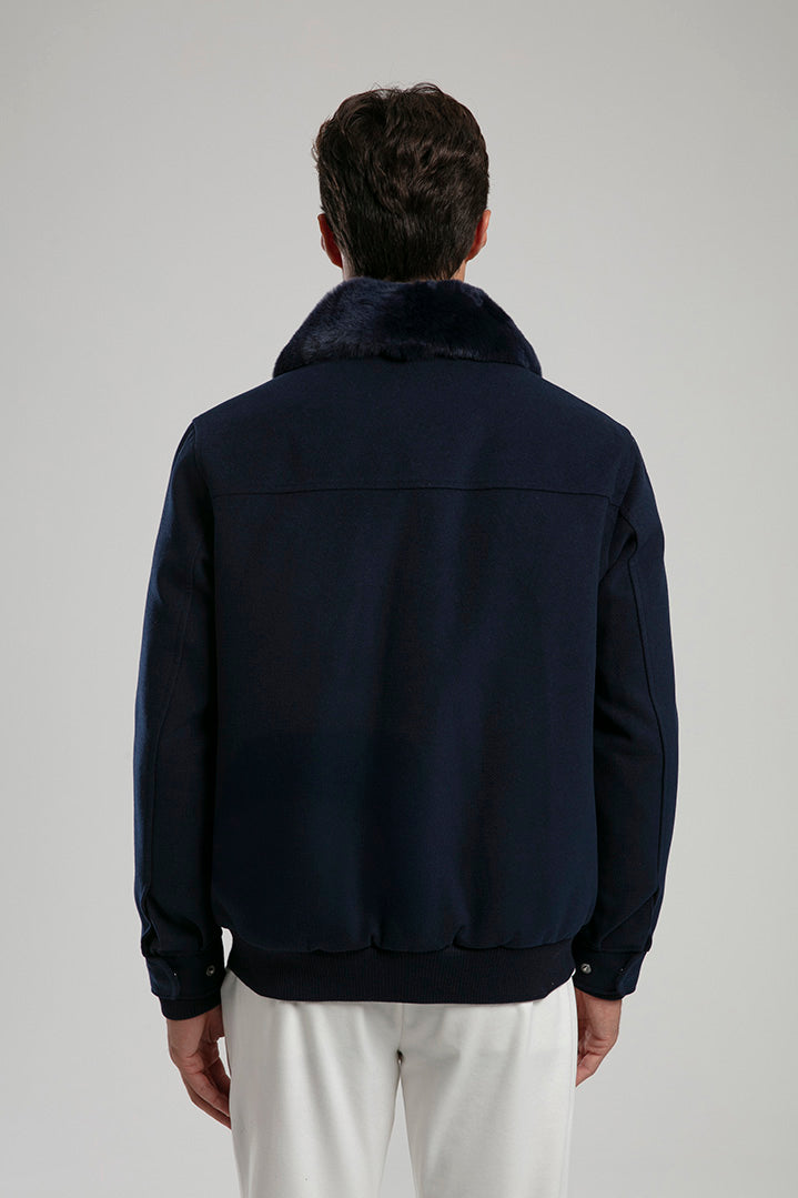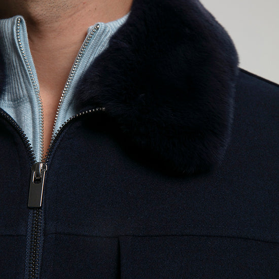 Zip-Up Jacket with Faux Fur Collar - Navy